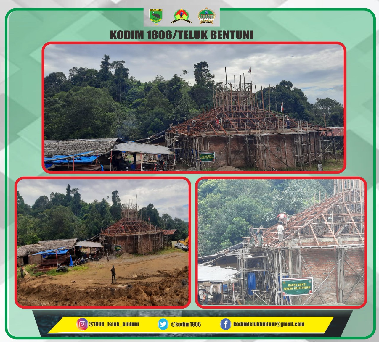 Koramil 1806-01/Teluk Bintuni Bersama 10 Orang Anggota Babinsa melaksanakan Karya Bakti Bertempat di Masjid Aljamiha Tahiti Bintuni,Distrik Bintuni,