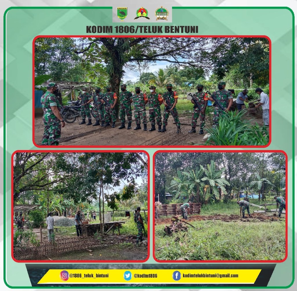 Anggota Koramil 1806-02/Babo di pimpin Pelda Zainudin melaksanakan Karya Bakti berjumlah 10 Orang dalam rangka pembangunan Masjid di kampung Nusei Distrik Babo kab Teluk Bintuni.