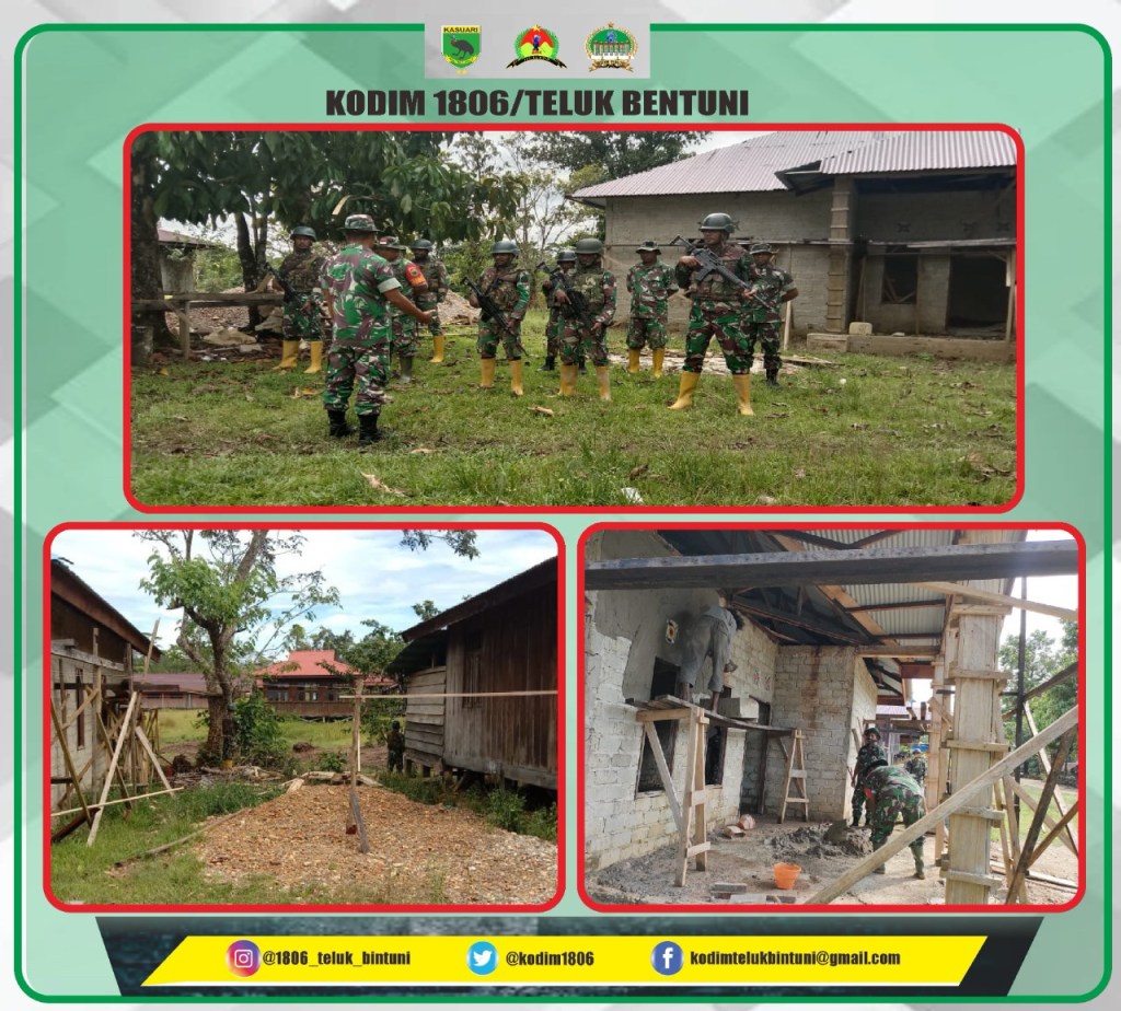 bertempat di rumah Bapak Halon Omrocona Kampung Estikim , distrik Moskona barat. Telah di laksanakan Karya bakti oleh anggota satgas pam mayerga di pimpin Serda Barito berjumlah 10 org, Kegiatan berjalan aman dan lancar.