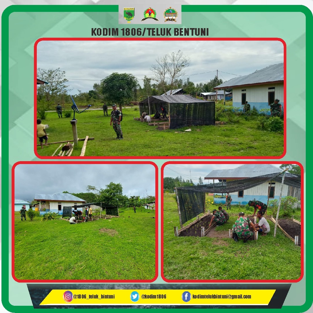 bertempat di Bapak Yulius Susure kampung Sanggwar, Personel Koramil Persiapan Aroba melaksanakan kegiatan karya bakti. Kegiatan berjalan dengan aman dan lancar.