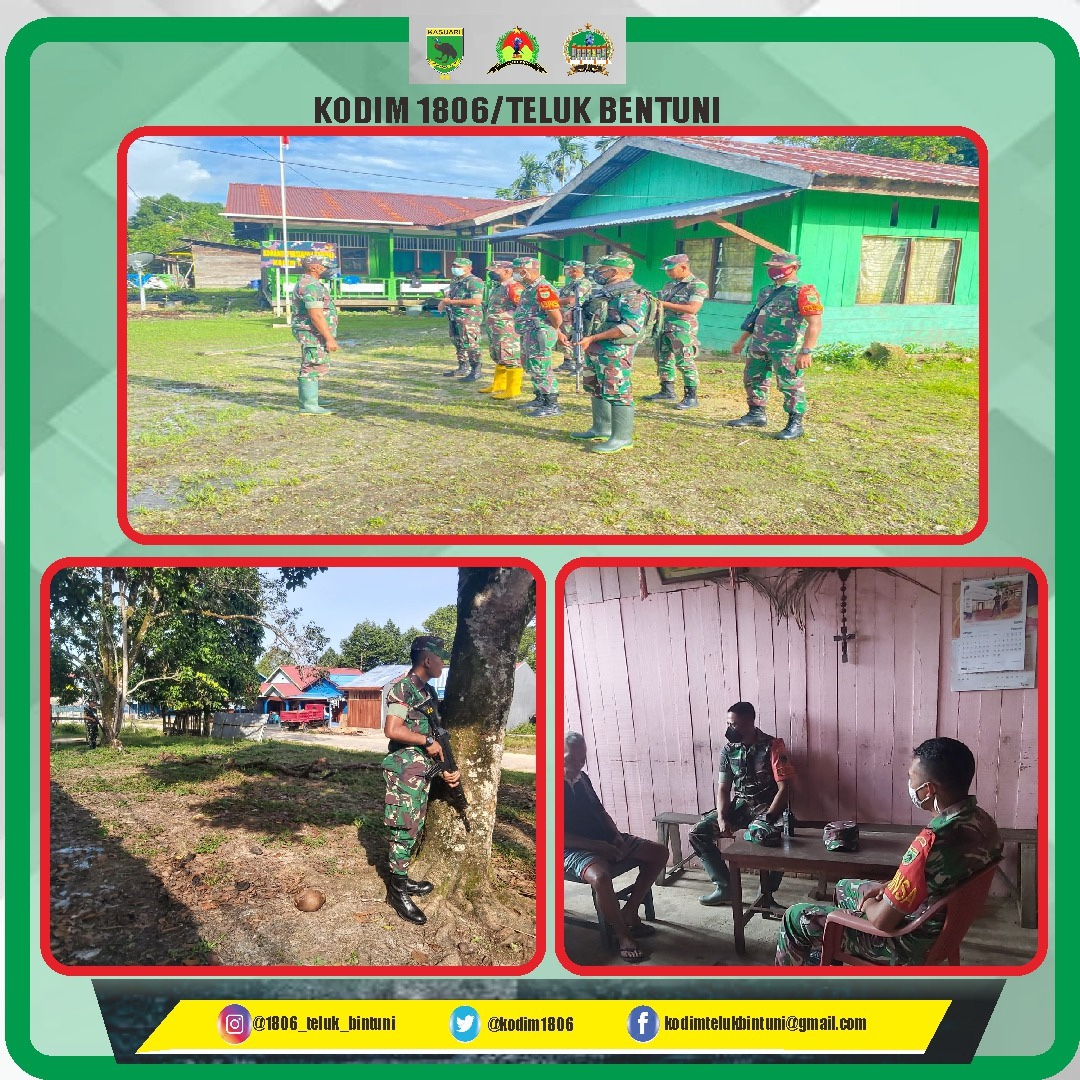 10 org anggota Koramil persiapan Sumuri di pimpin Serka Silvester melaksanakan kegiatan Komsos ke rumah tokoh adat Tofoi