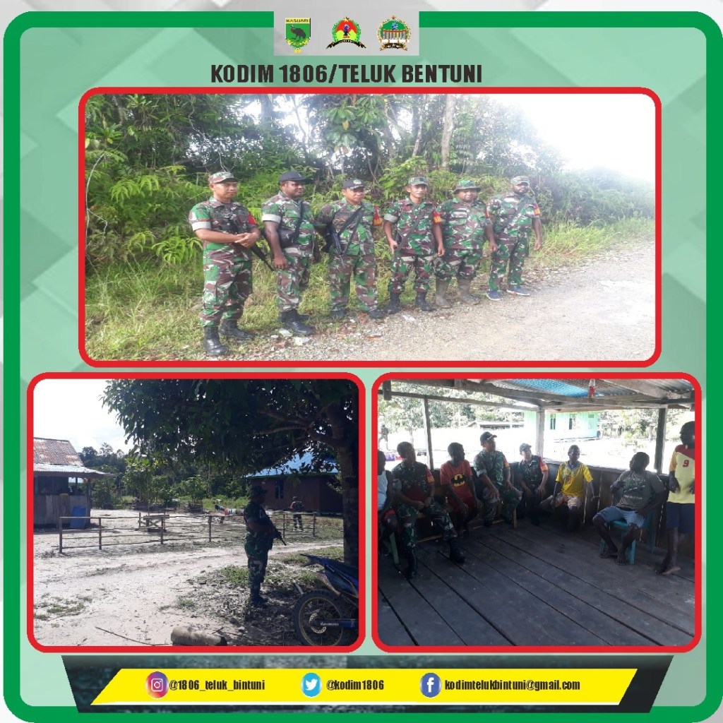 anggota Koramil Merdey di pimpin Serda Joshua melaksanakan Komsos di rumah bapak Paulus Asmorom di kampung Jahabra