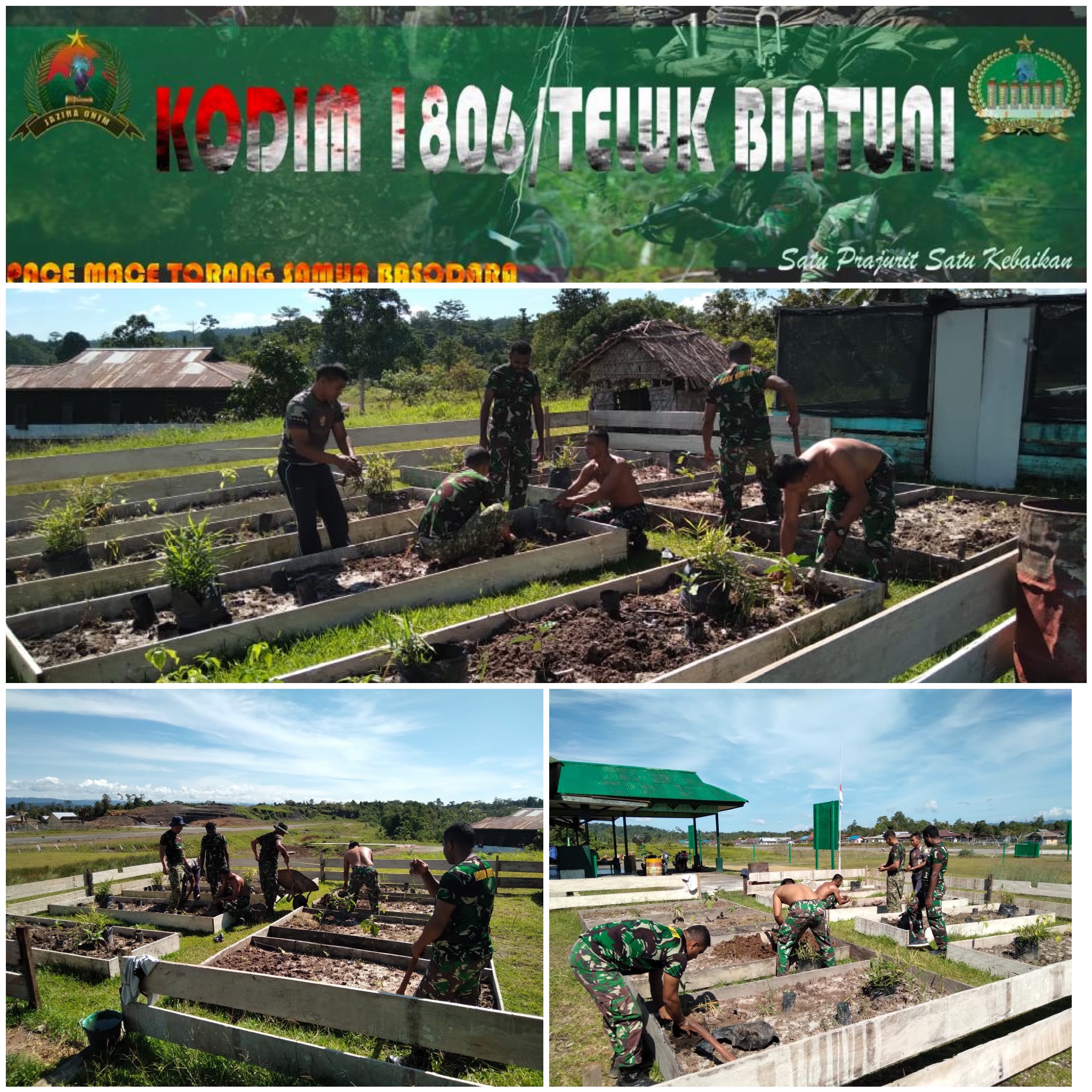 anggota Koramil 03/Merdey melaksanakan kegiatan Hanpangan di Halaman Koramil Merdey Distrik Merdey di pimpin Sertu Serda Joshua