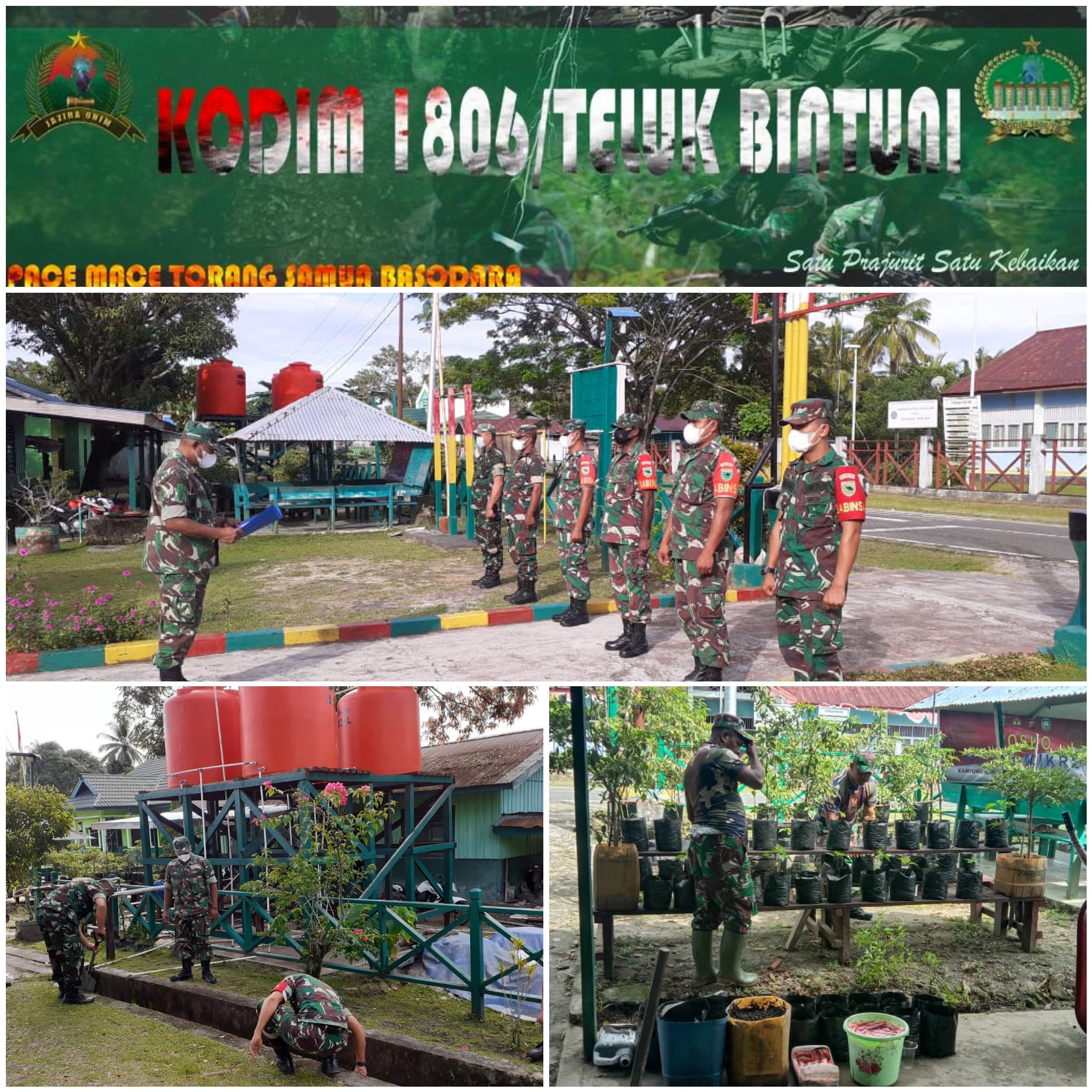 Anggota Koramil 1806-02/Babo dipimpin Danramil Letda Inf Djeki Rafael Lasol melaksanakan pembinaan pangkalan dan Han Pangan di Koramil 1806-02/Babo Distrik Babo,Kabupaten Teluk Bintuni.