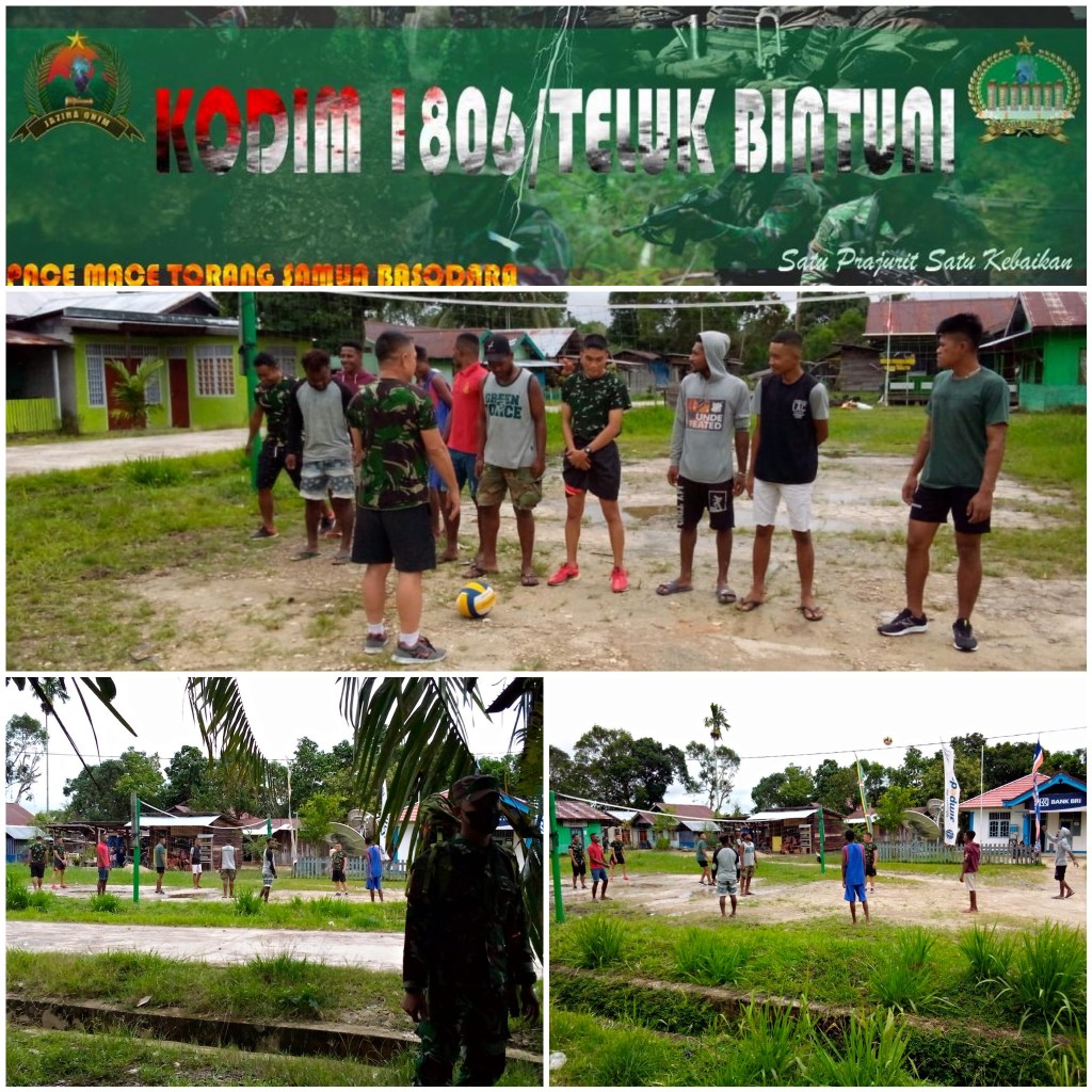 10 personil Koramil persiapan Sumuri dipimpin Letda inf.Joni bernat siby melaksanakan kegiatan olahraga bersama masyarakat di Kampung Tofoi Distrik Sumuri Kab.Teluk Bintuni.