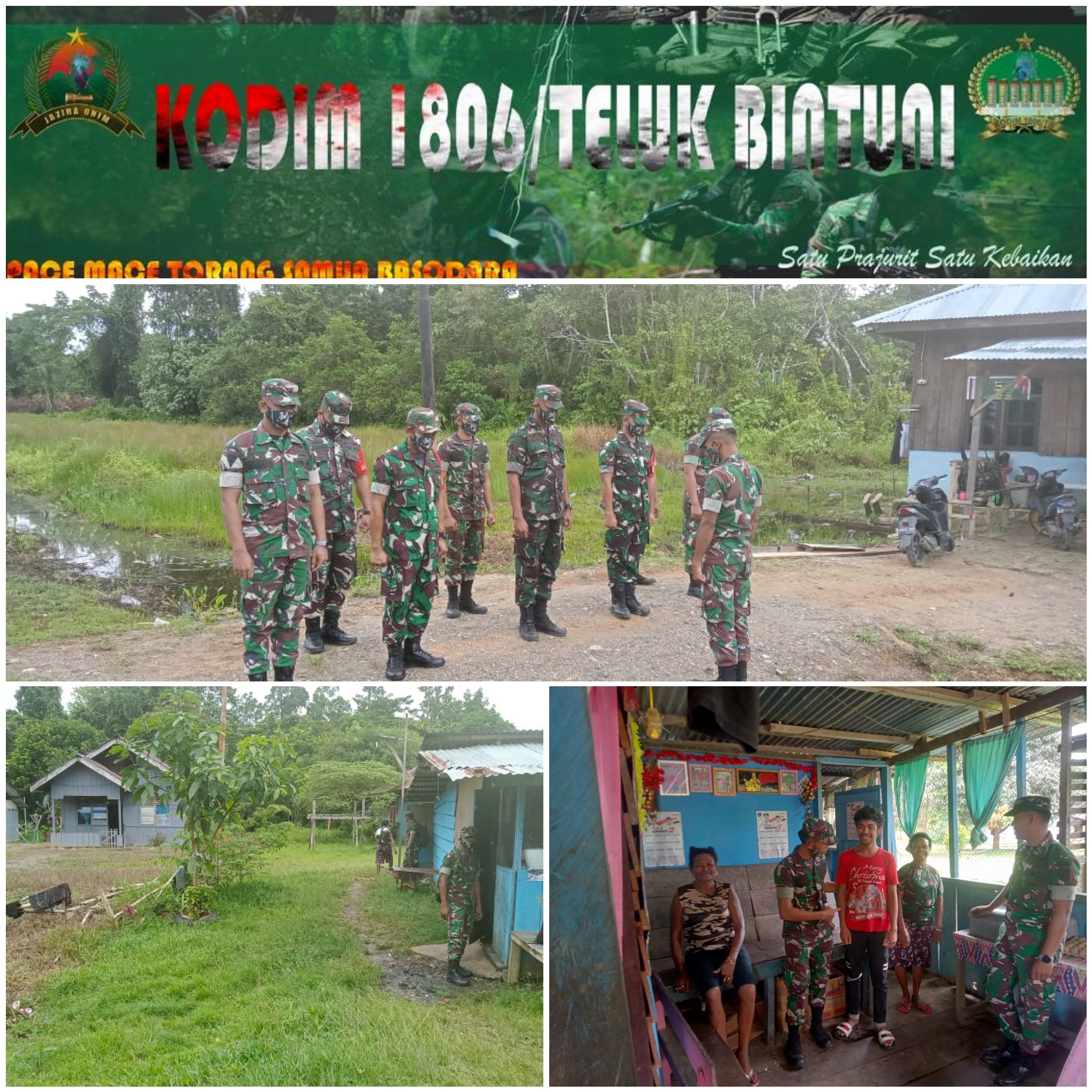 bertempat di Rumah Ibu Maria, Kp. Horna, Distrik Manimeri, Kab. Teluk Bintuni, Babinsa Koramil Persiapan Manimeri Melaksanakan Giat anjangsana Guna Melaksanakan Perekrutan Sekaligus Memperkenalkan Seputar TNI Kepada Anak Laki-laki Ibu Maria Agar Tercipta Keinginan untuk Mendaftarkan Diri Menjadi Seorang Anggota TNI.