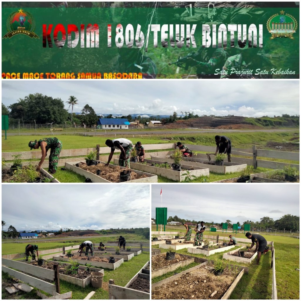 anggota Koramil 03/Merdey melaksanakan kegiatan Hanpangan di Halaman Koramil Merdey Distrik Merdey.