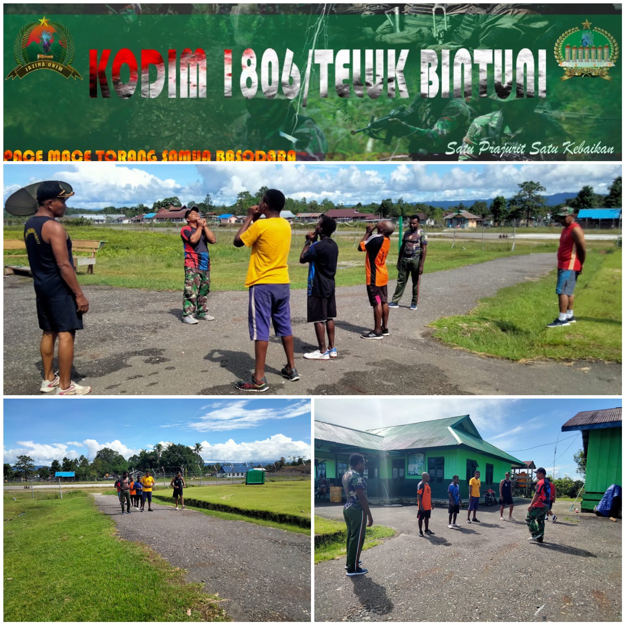anggota Koramil 03/Merdey melaksanakan pembinaan kepada generasi Pemuda orang asli Papua yg berkeinginan menjadi TNI di Makoramil Merdey Distrik Merdey.