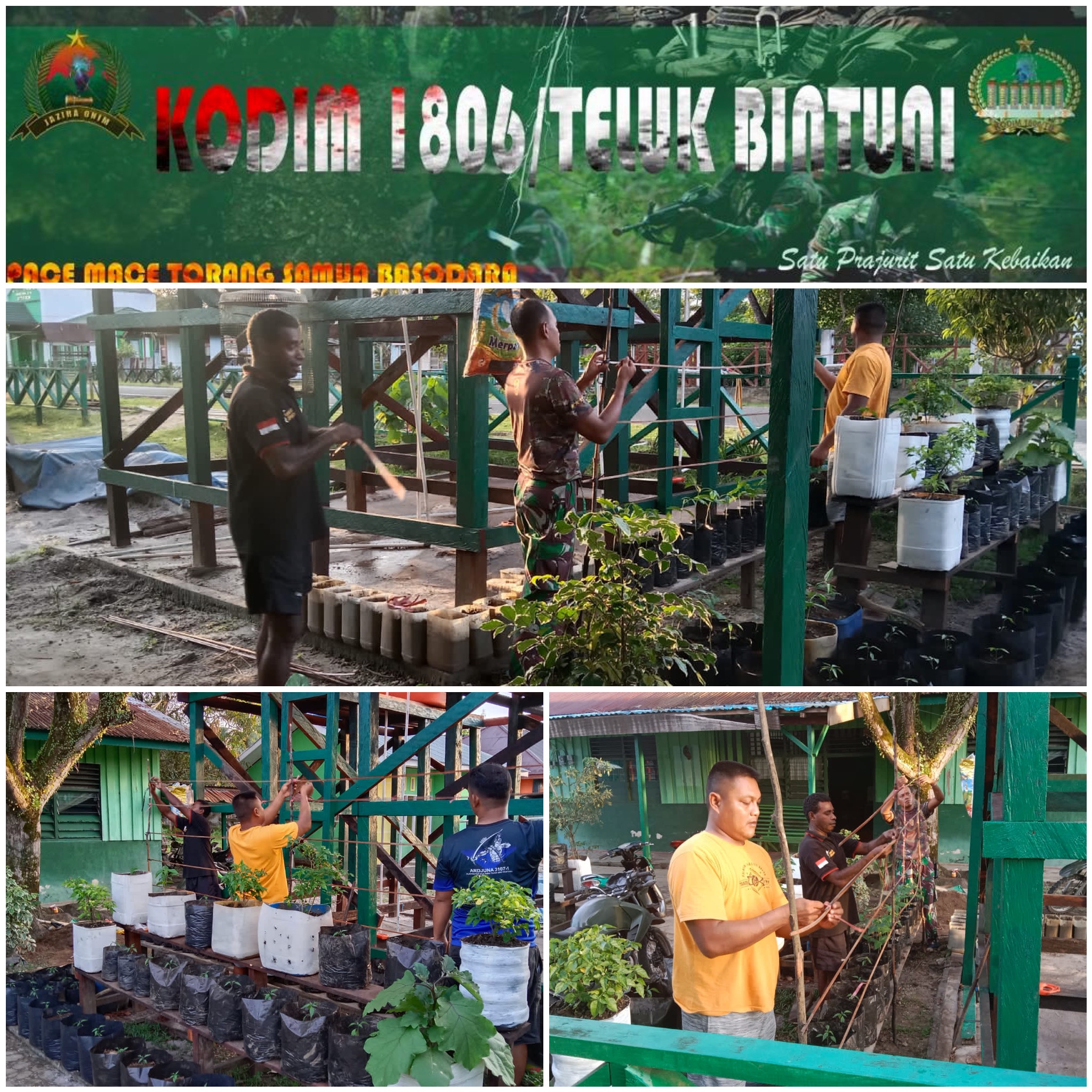 Orang Anggota Koramil 1806-02/Babo Dpp Serda panut melaksanakan han pangan di mako Koramil 02 Babo Distrik Babo,Kabupaten Teluk Bintuni.