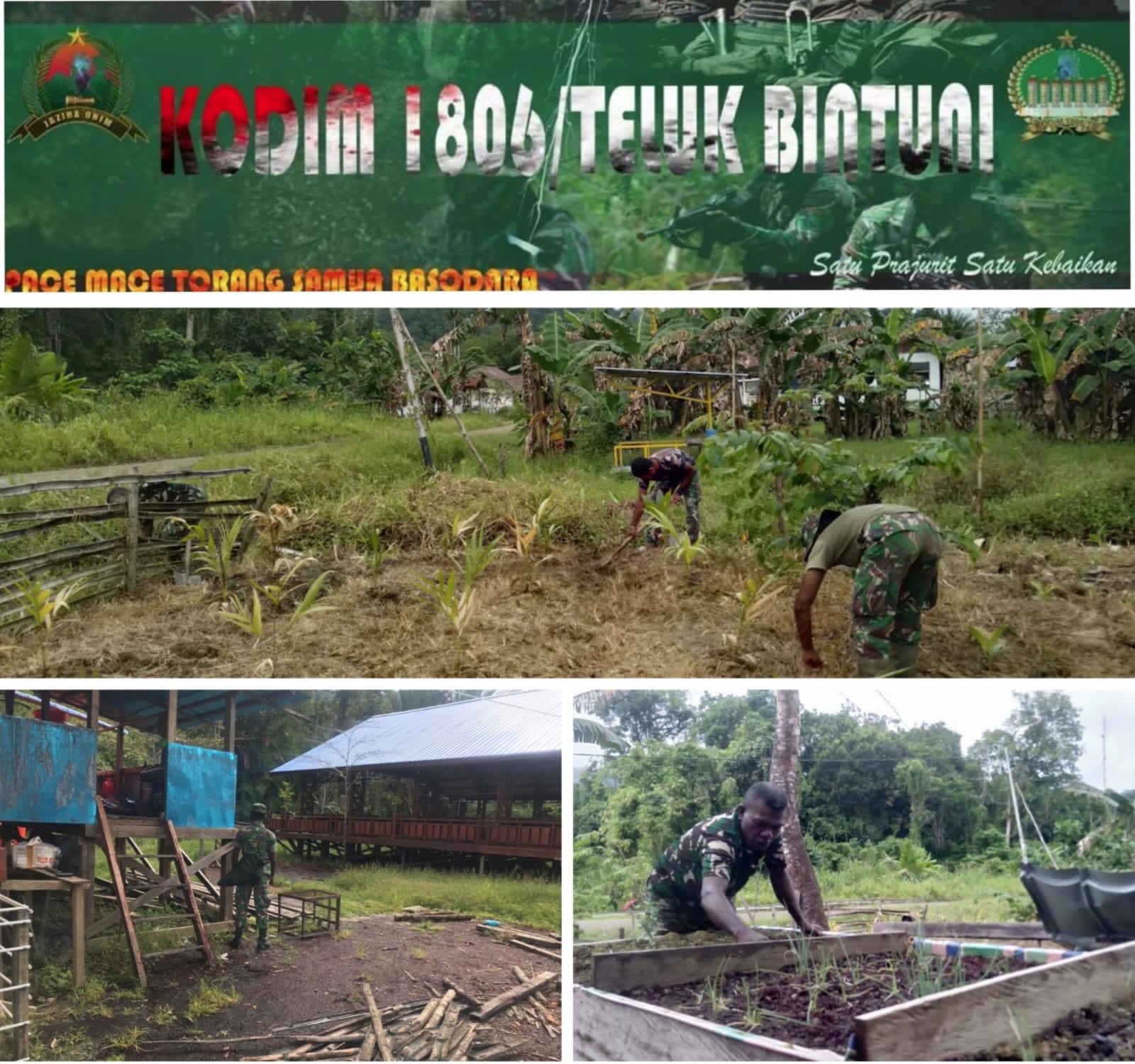 Anggota Koramil 1806-04/Wamesa di Pimpin Sertu Welem Y Mobilala Melaksanakan Han Pangan di Koramil Pembersihan lahan sekaligus perawatan tunas Daun bawang dihalaman Koramil 04/Wamesa Distrik Wamesa,Kabupaten Teluk Bintuni.