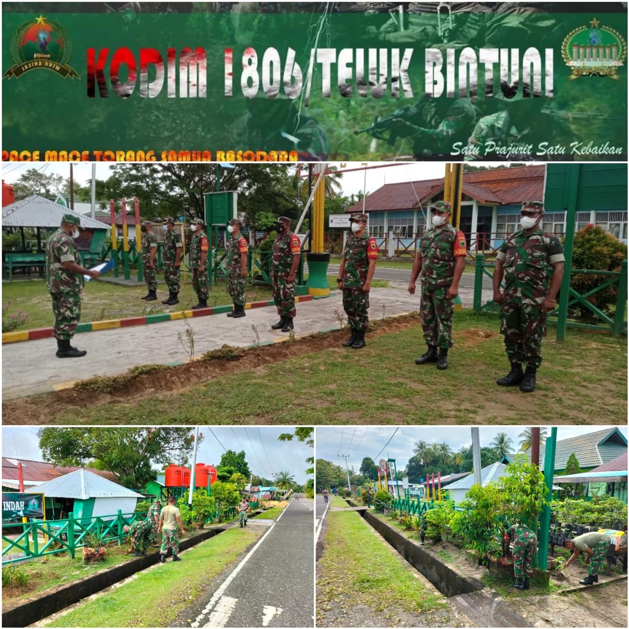 Anggota Koramil 1806-02/Babo di Pimpin Pelda Zainudin melaksanakan pembenahan pangkalan di Sekitar Koramil 02 Babo Distrik Babo,Kabupaten Teluk Bintuni.