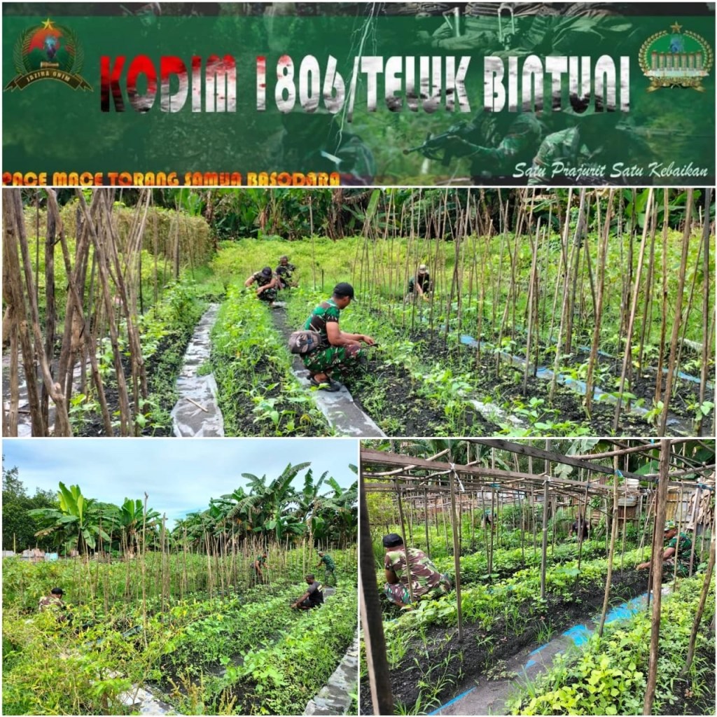 Bertempat di samping kantor Koramil 1806-05/Tomu, Anggota melaksanakan kegiatan ketahanan pangan dan Pemeliharaan tanaman sayuran dan lombok di samping kantor Koramil 05/Tomu.Distrik Tomu Kabupaten Teluk Bintuni.