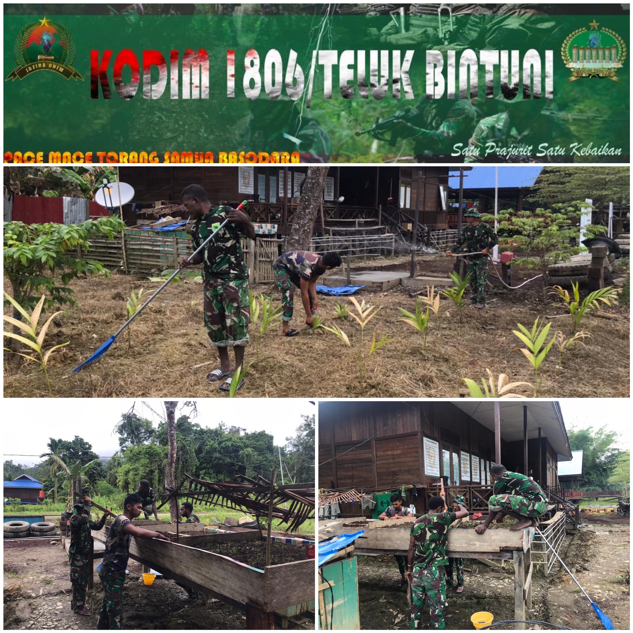 Anggota Koramil 1806-04/Wamesa dipimpin Sertu Welem Y Mobilala Melaksanakan Ketahanan Pangan di Koramil Pembersihan lahan sekaligus perawatan daun bawang dihalaman Koramil 04/WamesaDistrik Wamesa,Kabupaten Teluk Bintuni.