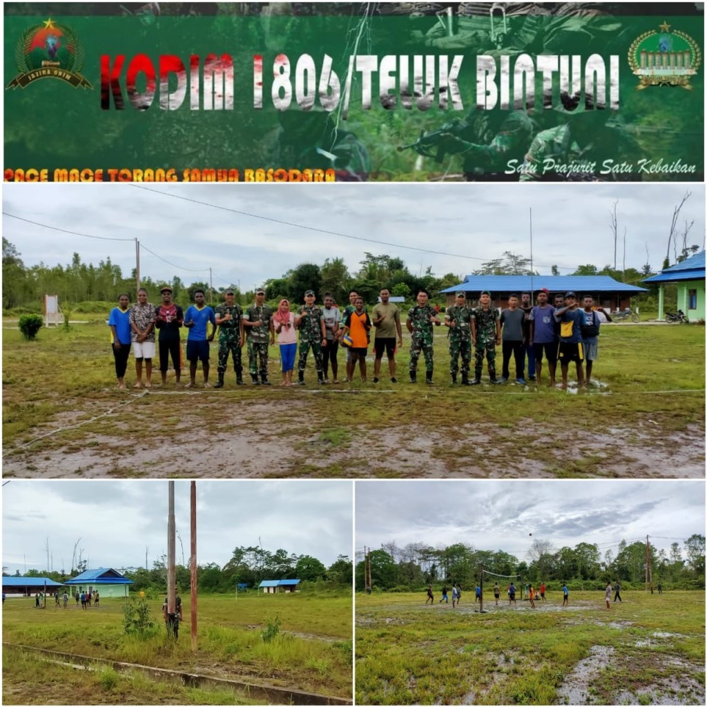 10 Orang Personel Koramil Persiapan Aroba di pimpin Sertu Murliansah melaksanakan kegiatan Voli bersama Masyarakat di kampung Sanggwar. guna menjalin Silaturahmi Bersama Masyarakat Distrik Aroba Kabupaten Teluk Bintuni.