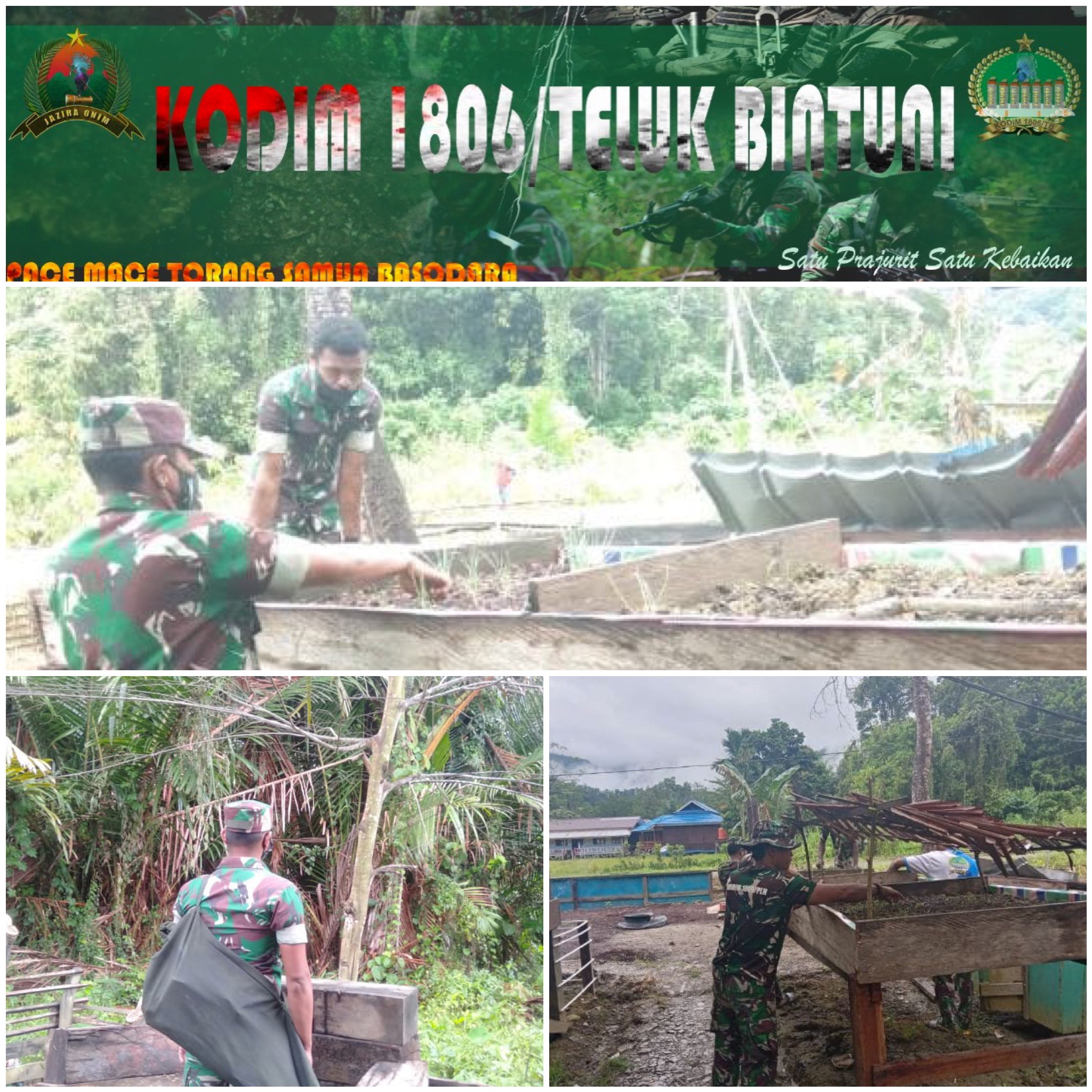 Orang Anggota Koramil 1806-04/Wamesa dipikpin Sertu Welem Y Mobilala Melaksanakan Han Pangan di Koramil Pembersihan lahan sekaligus perawatan bibit sawi dihalaman Koramil 04/Wamesa Distrik Wamesa,Kabupaten Teluk Bintuni.