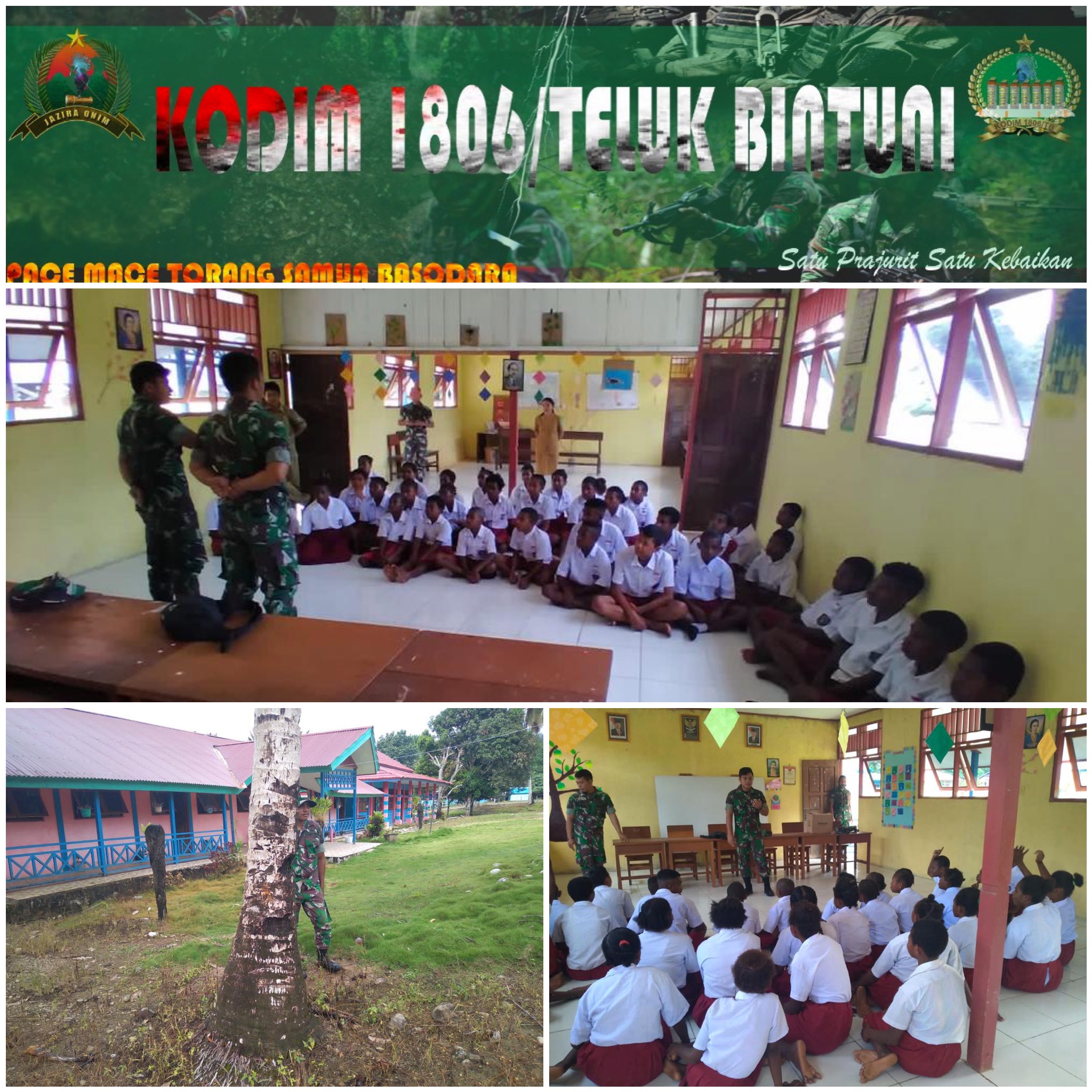 10 personil Koramil persiapan Dataran Beimes dipimpin Letda Chk M.Taqwim ,melaksanakan kegiatan wasbang di SD Inpres HORNA.