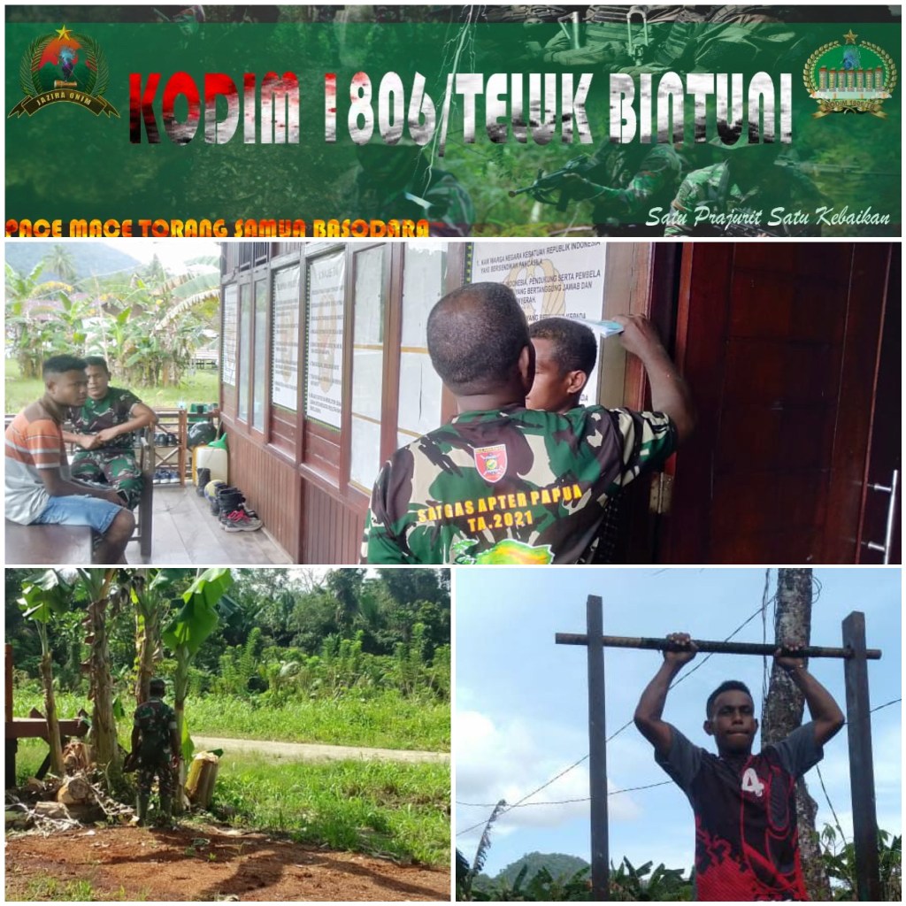 Anggota Koramil 1806-04/Wamesa dipimpin Sertu Welem Mobilala Melaksanakan Pembinaan bagi Pemuda-Pemudi dalam Rangka Perekrutan TNI-AD di Distrik Wamesa Kabupaten Teluk Bintuni