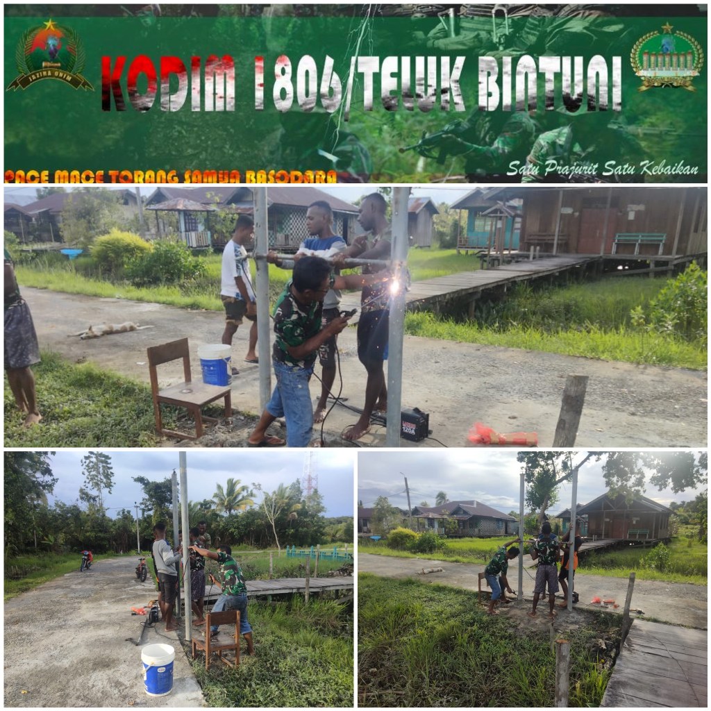 Bertempat di Makoramil Melaksanakan pembenahan pangkalan pembuatan sarana untuk Restok,Situp guna pembinaan calon prajurit TNI di kp.wanagir distrik tomu Kab.Teluk Bintuni.