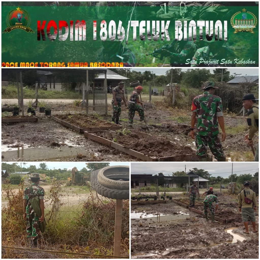 bertempat di Makoramil 1806-06/Meyado telah dilaksanakan kegiatan Ketahanan pangan dengan melaksanakan pembersihan rumput di bedeng tanaman dan pembuatan bedeng baru oleh anggota Koramil 06 Meyado.