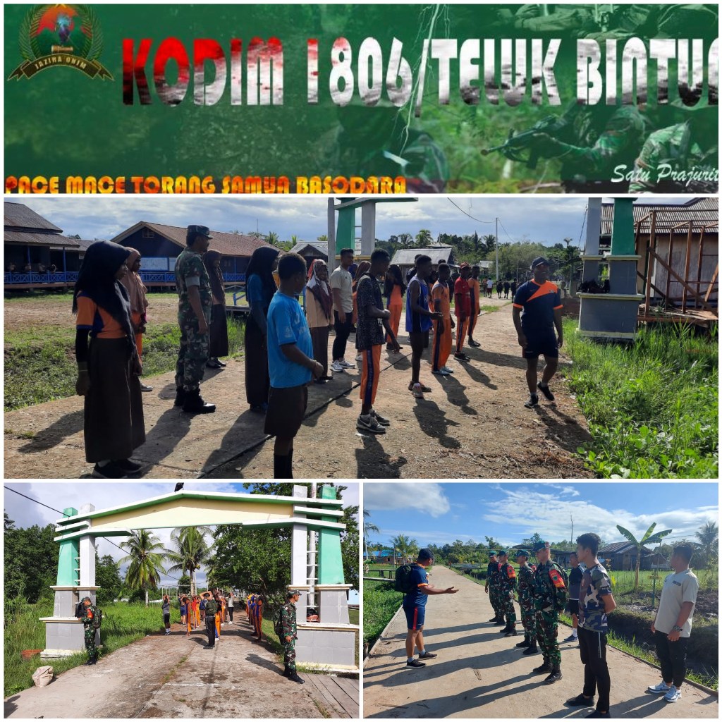 Personel Koramil Persiapan Kamundan melaksanakan kegiatan Olahraga bersama masyarakat dan anak sekolah di Kampung Kalitami II distrik Kamundan dengan