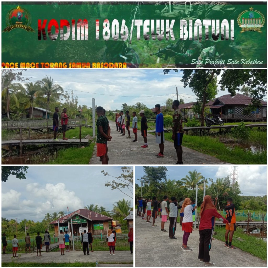 Personil Koramil 1806-05/Tomu melaksanakan kegiatan pembinaan putra putri daerah papua menjadi prajurit TNI-AD,di depan kantor koramil dengan jumlah peserta Pria 27 Orang Putri 7 Orang Kp.Wanagir Distrik Tomu Kab.Teluk Bintuni.