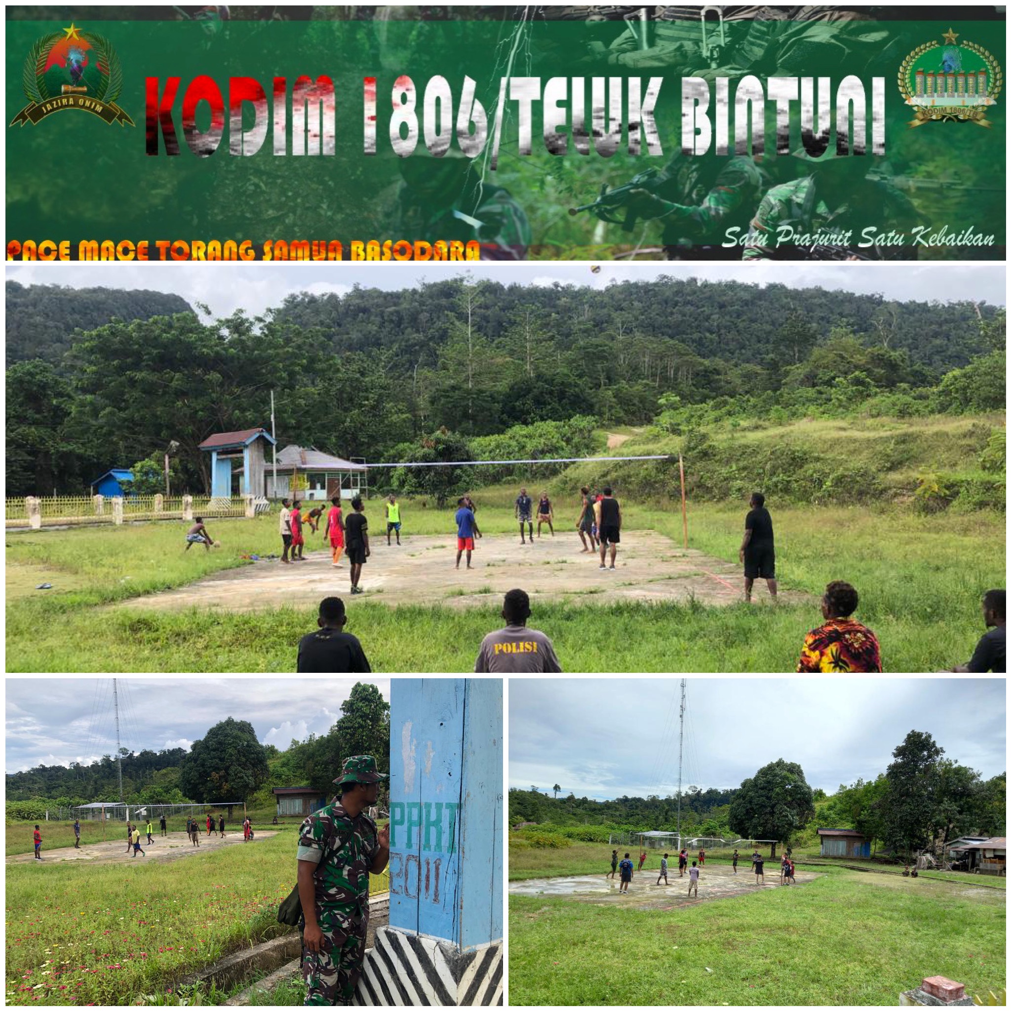 Bertempat di Kampung Horna, Anggota melaksanakan Kegiatan Olahraga Voly bersama masyarakat di lapangan Voly Desa Horna.