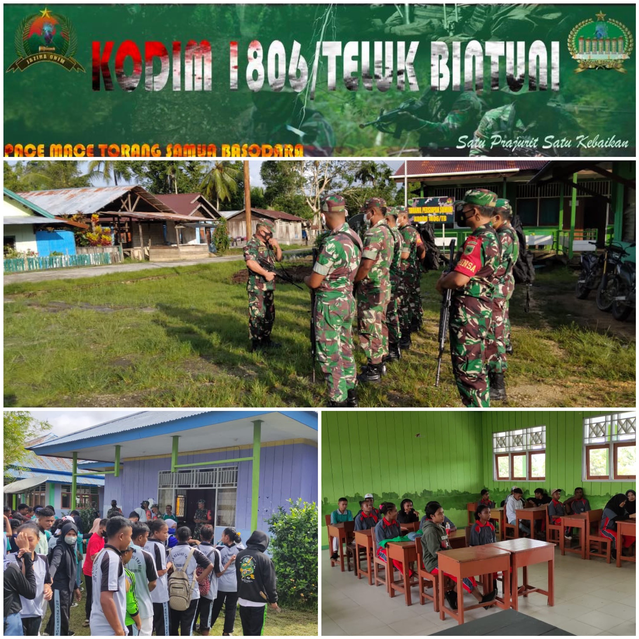 personil Koramil persiapan Sumuri dipimpin Sertu Rivai melaksanakan kegiatan komsos perekrutan putra putri daerah papua menjadi prajurit TNI-AD ,di SMA tofoi di Kp.tofoi Distrik Sumuri Kab.Teluk Bintuni.