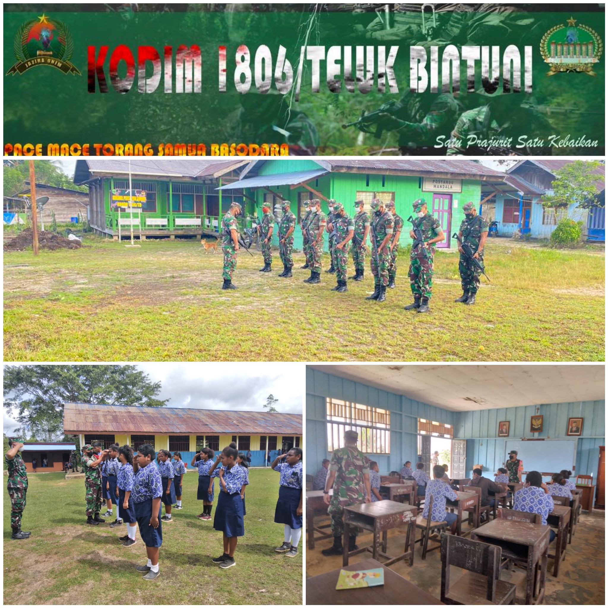 personil Koramil persiapan Sumuri Dpp.Sertu Supriyanto melaksanakan kegiatan Sosialisasi Bela negara di SMP tofoi Kampung tofoi Distrik Sumuri Kab.Teluk Bintuni
