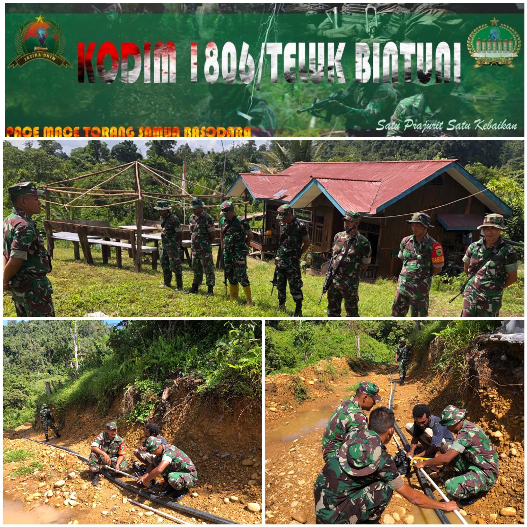 bertempat di kampung Huss, Personel Koramil Persiapan Dataran beimes melaksanakan kegiatan Karya Bakti Perbaikan Pipa milik puskesmas Distrik Dataran Beimes