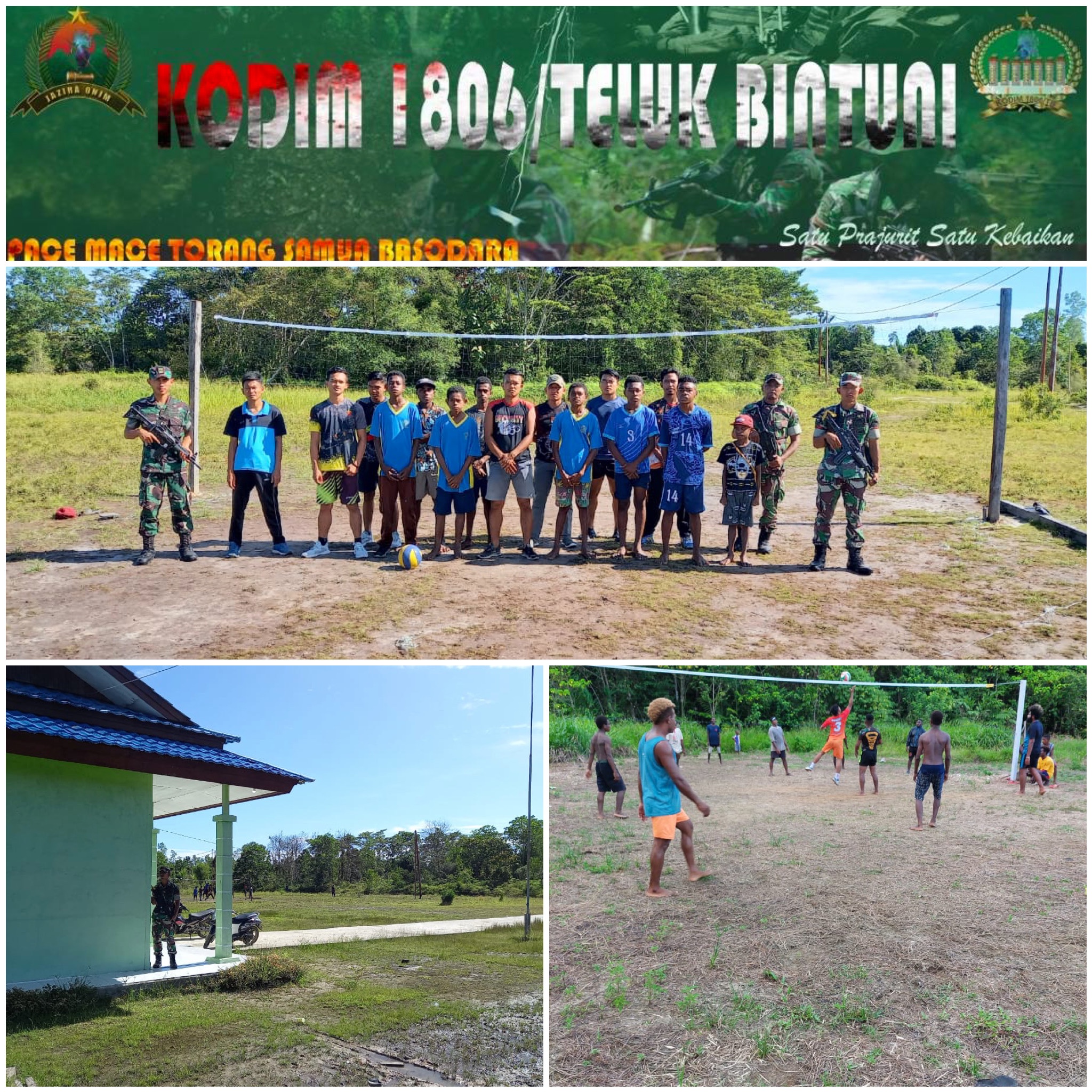Personel Koramil Persiapan Aroba melaksanakan kegiatan Olahraga bersama masyarakat di kampung Aroba Distrik aroba dengan