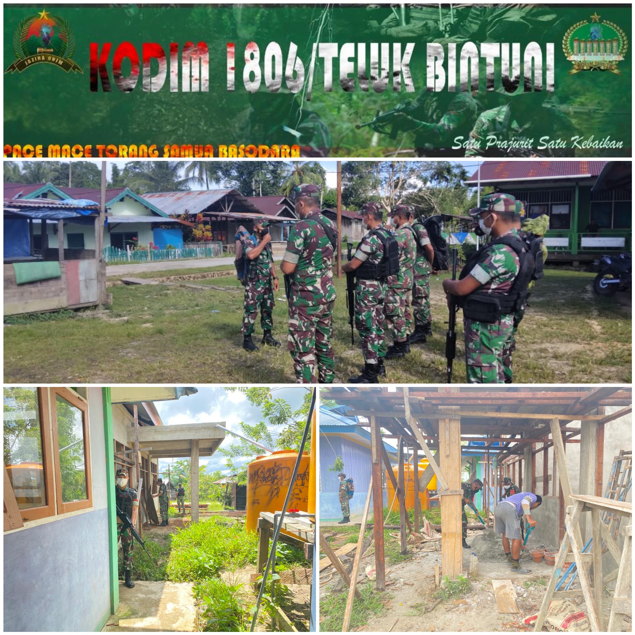 personil Koramil persiapan Sumuri Dpp.Sertu Munif melaksanakan kegiatan karya bhakti pembangunan kantor perpustakaan di SMA tofoi,di Kp.tofoi Distrik Sumuri Kab.Teluk Bintuni.