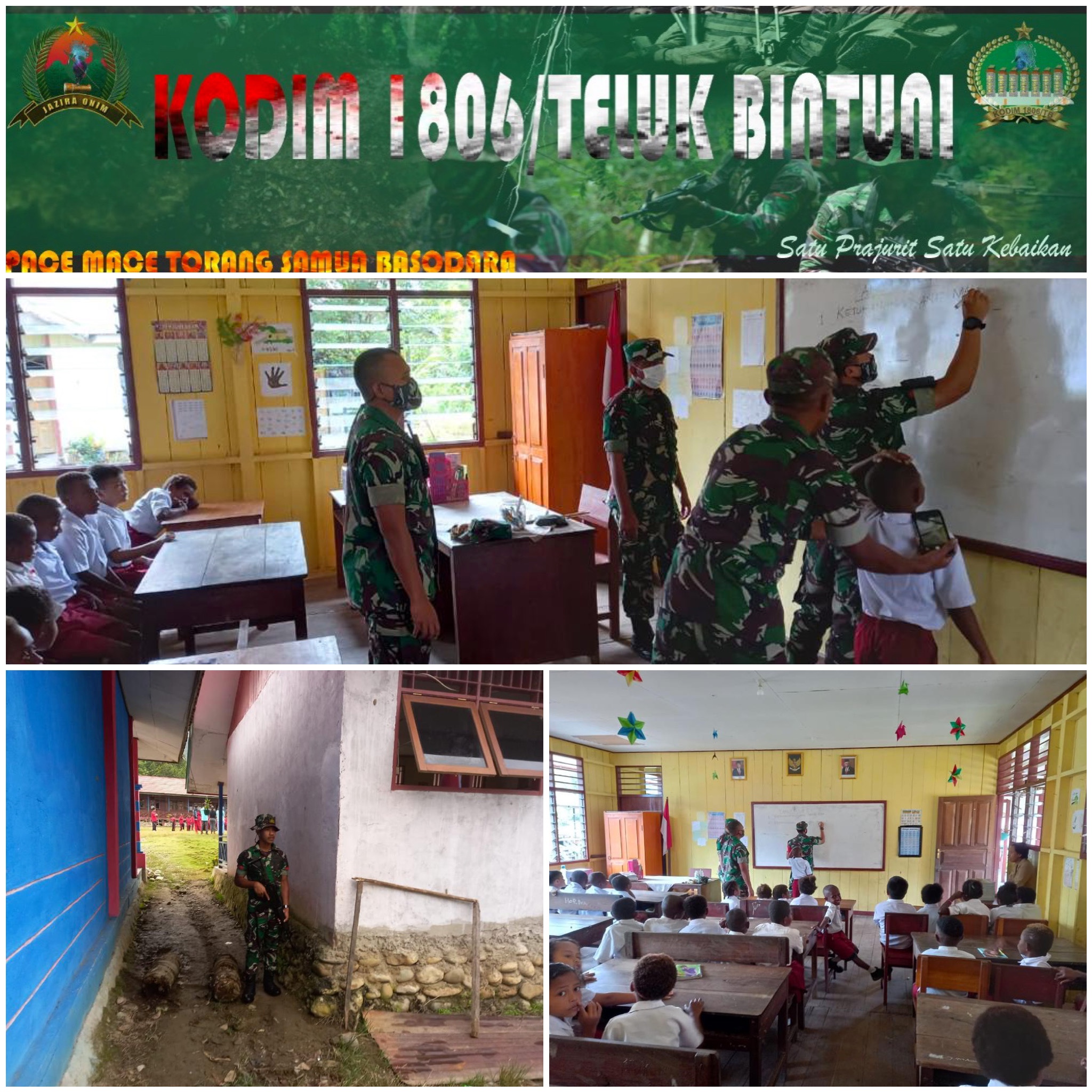 bertempat di SD Inpres kampung Horna, Personel Koramil Persiapan Dataran beimes melaksanakan kegiatan Sosialisasi Wawasan Kebangsaan siswa/i SD Inpres Horna.