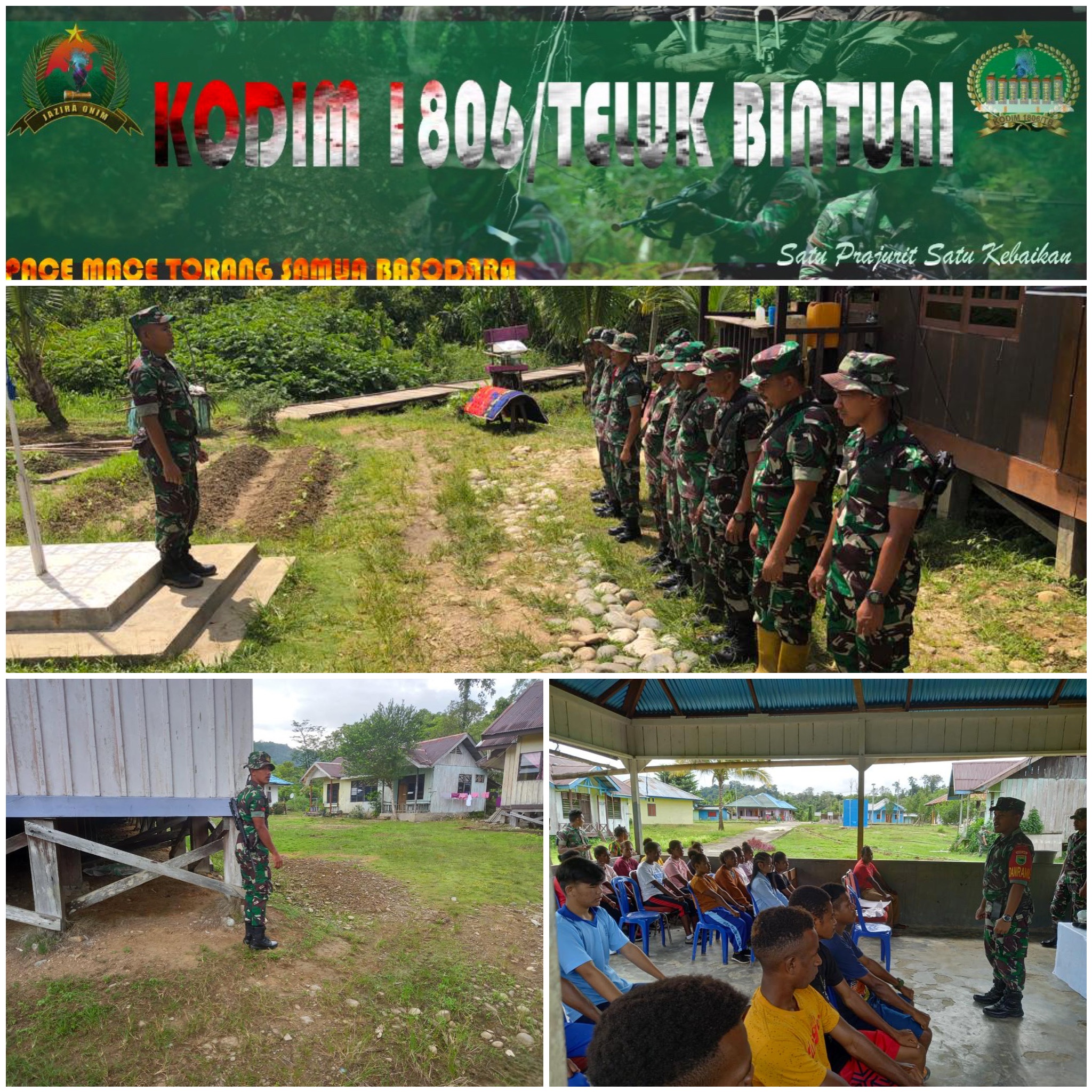 anggota Koramil Persiapan Dataran Beimes ,melaksanakan kegiatan sosialisasi rekrutment prajurit kepada Putra Distrik Dataran Beimes yang berkeinginan menjadi prajurit TNI-AD, pelaksanaan kegiatan di aula desa Hus.