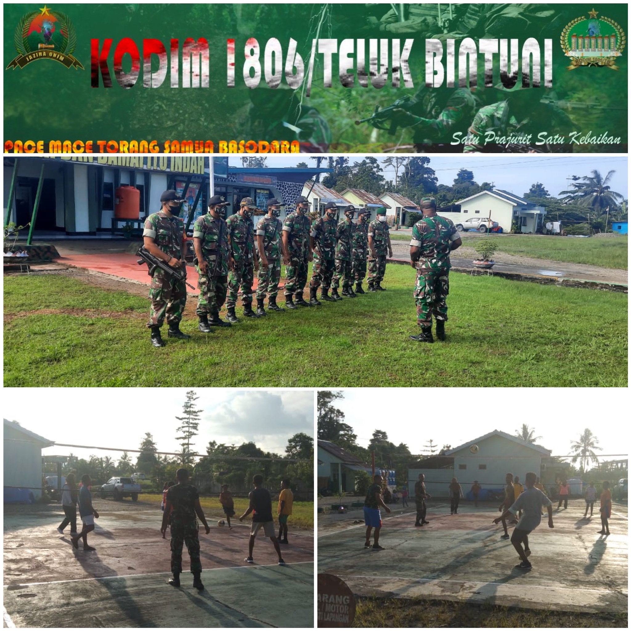 bertempat di Kampung Argosigemerai Distrik Bintuni,Babinsa Serka Otniel Bersama Anggota Melaksanakn Kegiatan Olah raga bersama Masyarakat Binaan.