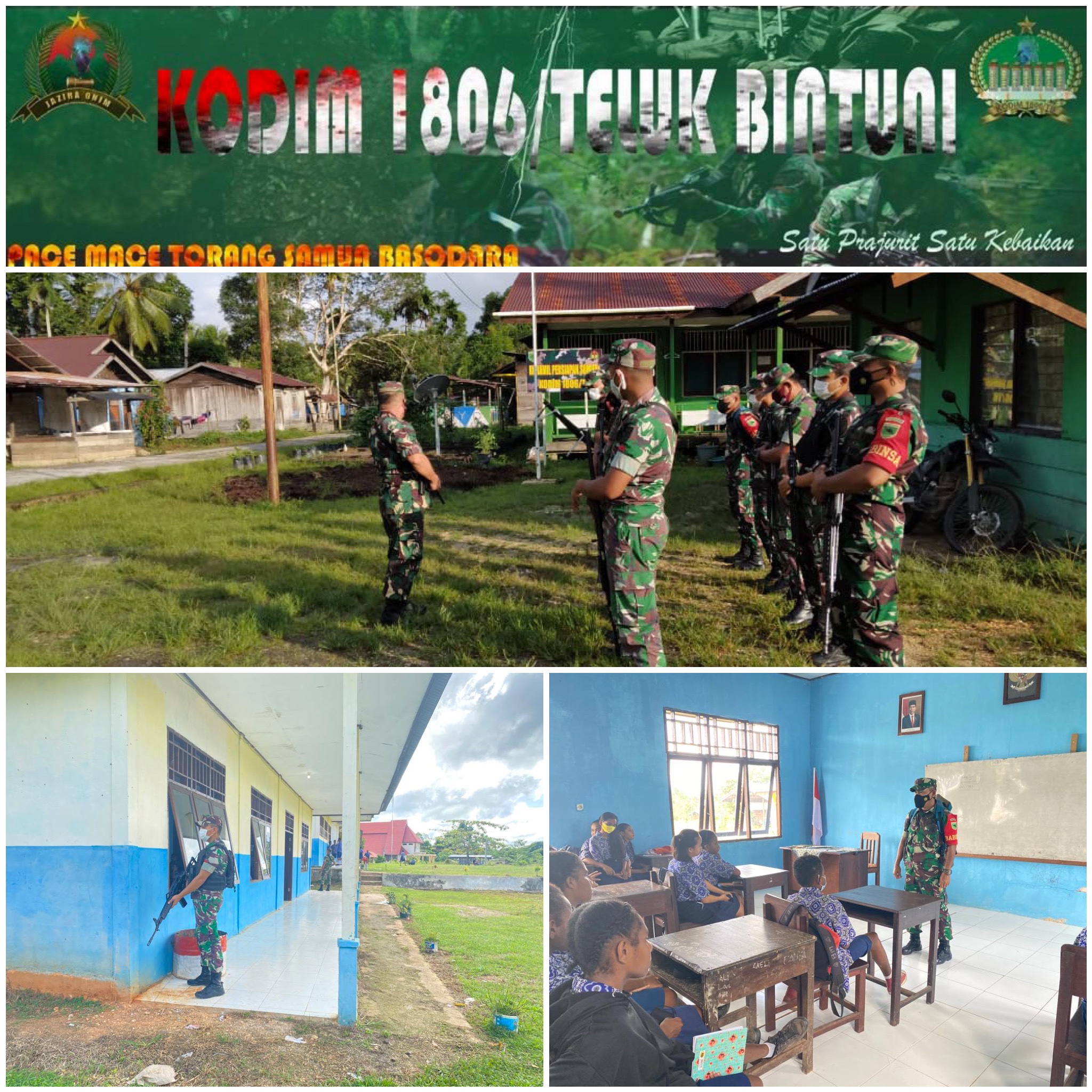 personil Koramil persiapan Sumuri dipimpin Srt Rivai melaksanakan kegiatan wasbang di smp tofoi dengan melatihkan peraturan baris berbaris,di Kp.tofoi Distrik Sumuri Kab.Teluk Bintuni.