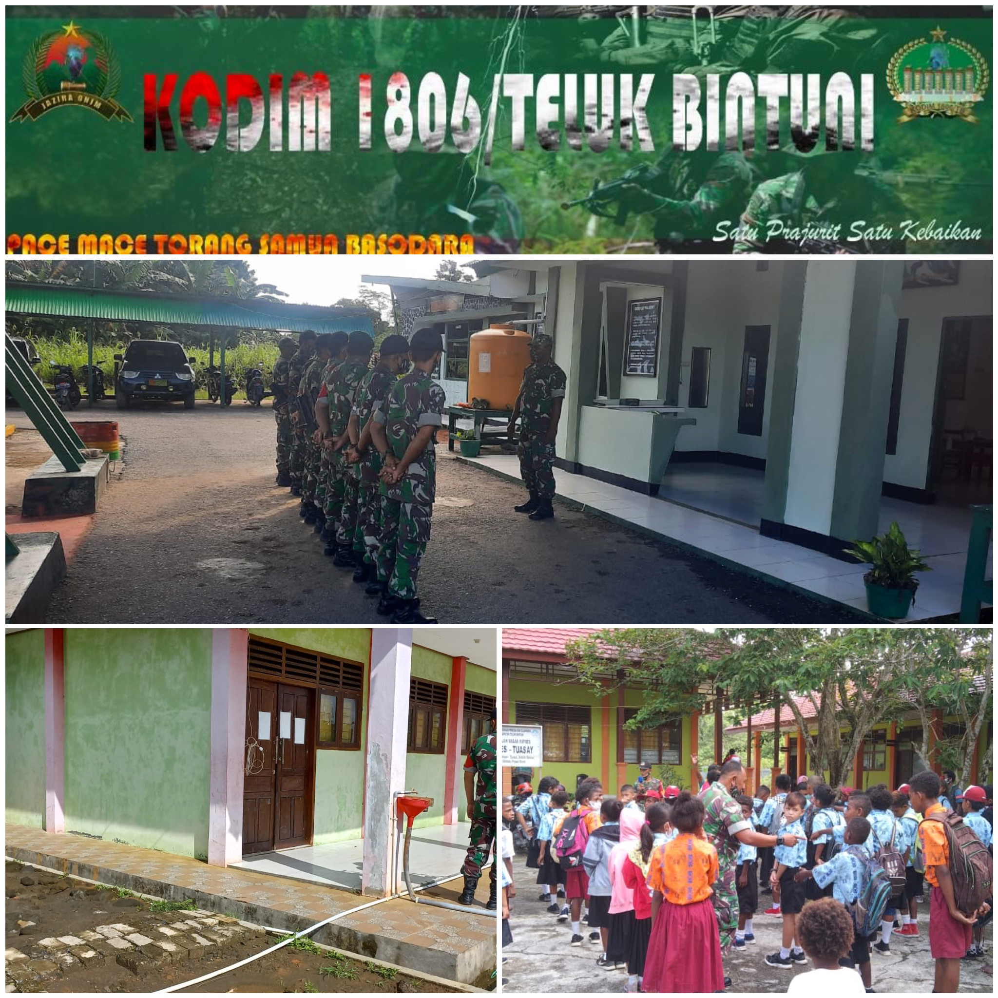 Bertempat Di SD YPK Tuasai kp.Tuasai Distrik Bintuni,Babinsa Sertu Samran Beserta Anggota Melaksanakan Kegiatan Belanegara.