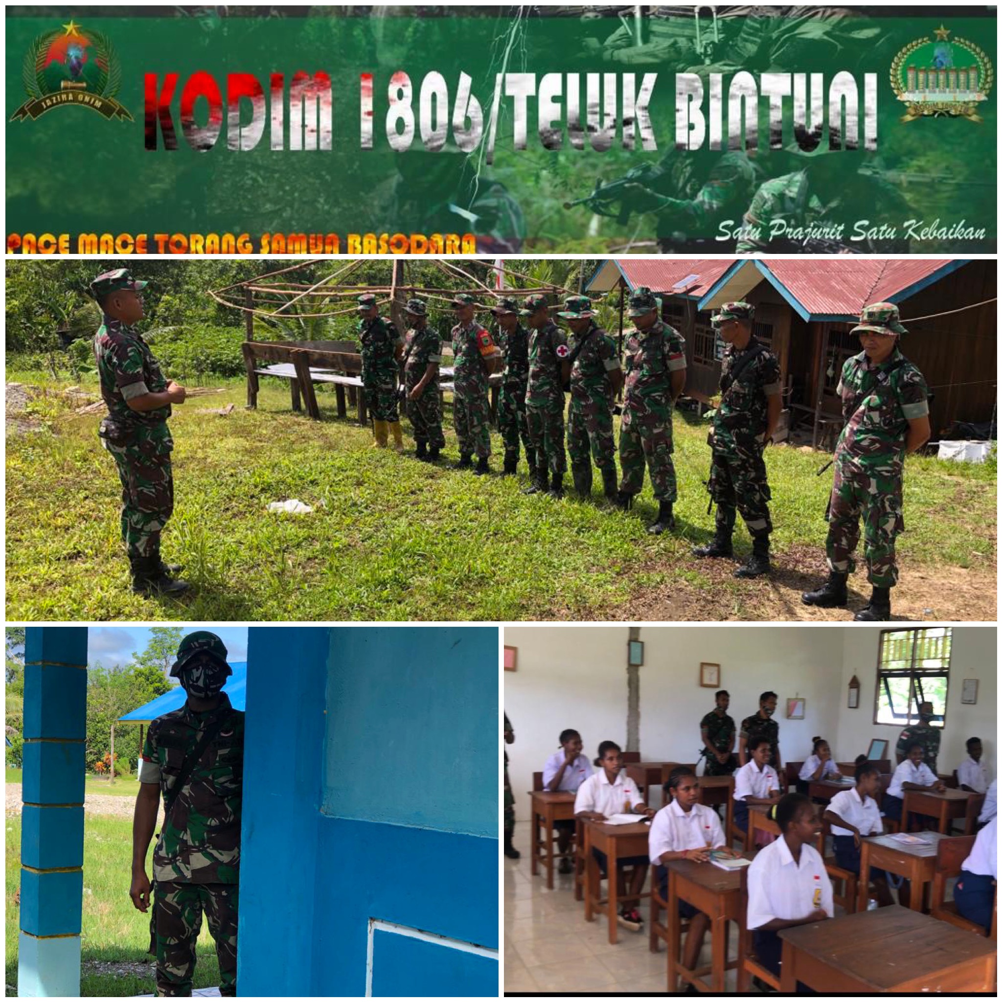 bertempat di Lapangan SMP Horna, Personel Koramil Persiapan Dataran beimes melaksanakan kegiatan Sosialisasi Bela Negara kepada Pemuda/kampung Horna.