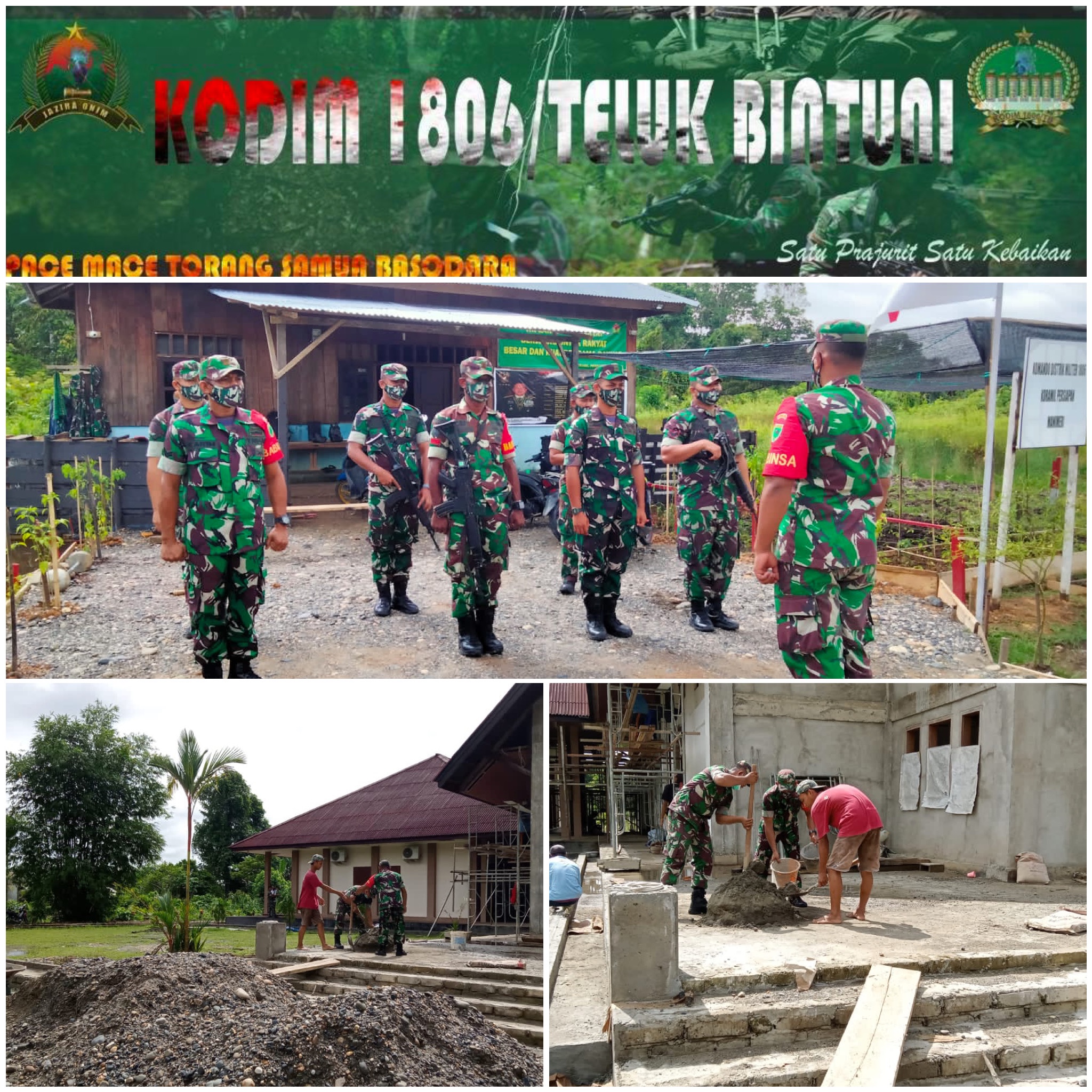 Anggota Koramil Persiapan Manimeri melaksanakan Karya bakti di Gereja Santo kampung Bumi saniari Manimeri, Kabupaten Teluk Bintuni.