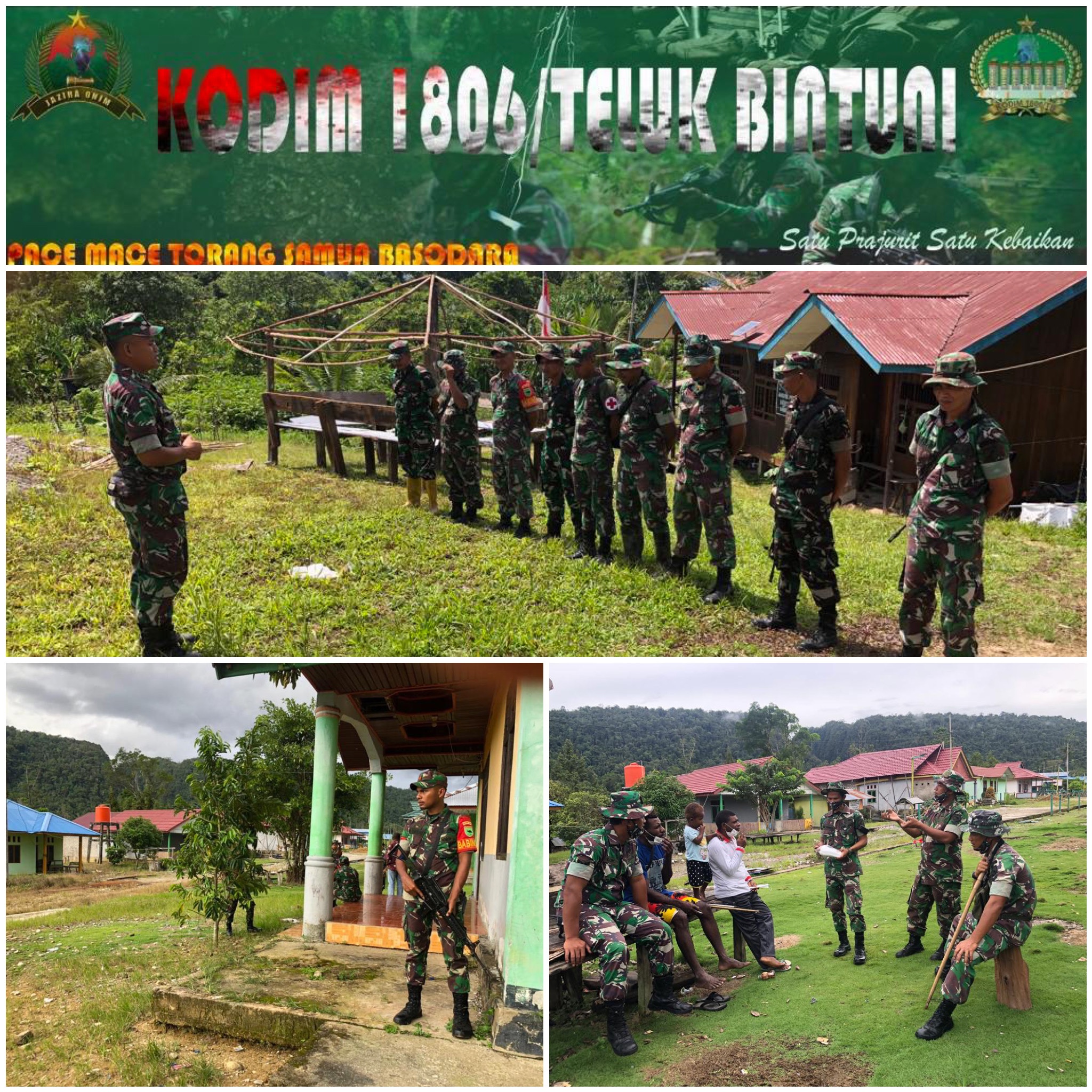 bertempat di Rumah Bp.Enoch Menci Dowansiba Di kampung Menci Distrik dataran Beimes, Personel Koramil Persiapan Dataran beimes melaksanakan kegiatan komsos kerumah kepala kampung Menci .