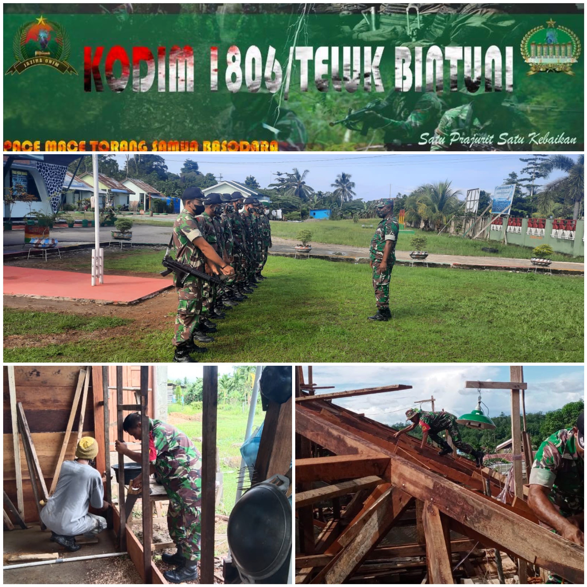 Bertempat di Rumah Bapak Philipus Iba kp Weisiri Distrik Bintuni,Babinsa Serka Otniel Ampnir Bersama Anggota melaksanakan kegiatan Karya Bakti Pembuatan Rumah.