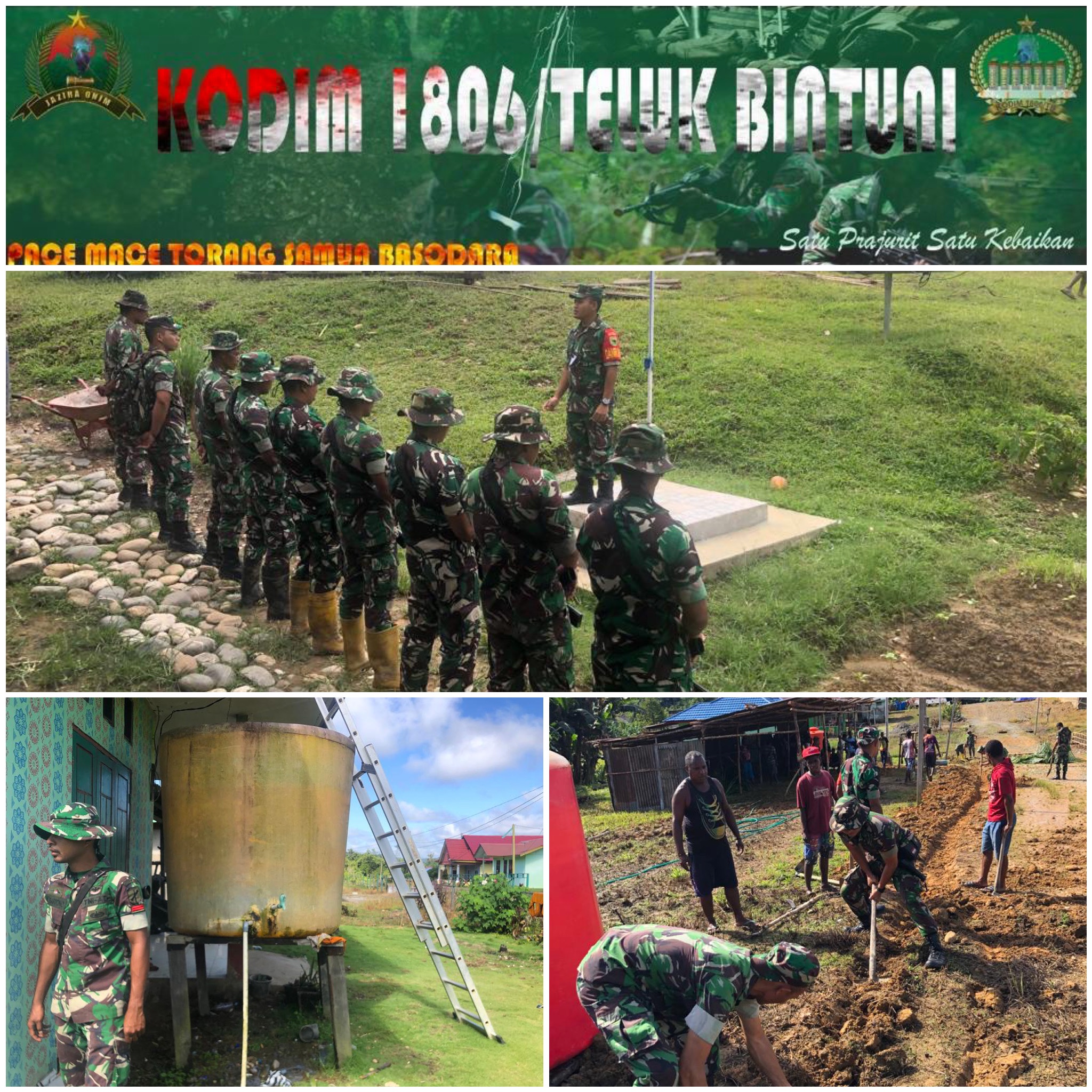bertempat di kampung Hus, Personel Koramil Persiapan Dataran beimes melaksanakan kegiatan Karya Bakti Pembuatan Parit kampung Hus Distrik Dataran Beimes.