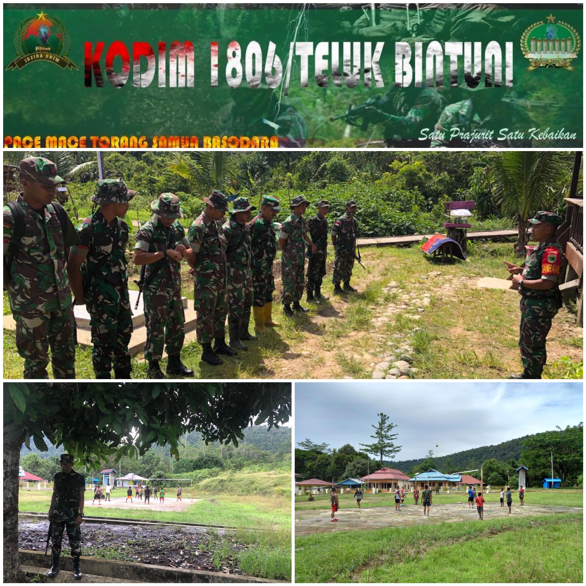 Kegiatan Olahraga bersama Masyarakat Horna Koramil Persiapan Dataran Beimes, Bertempat di Kampung Horna, Anggota melaksanakan Kegiatan Olahraga Voly bersama masyarakat di lapangan Voly Desa Horna.