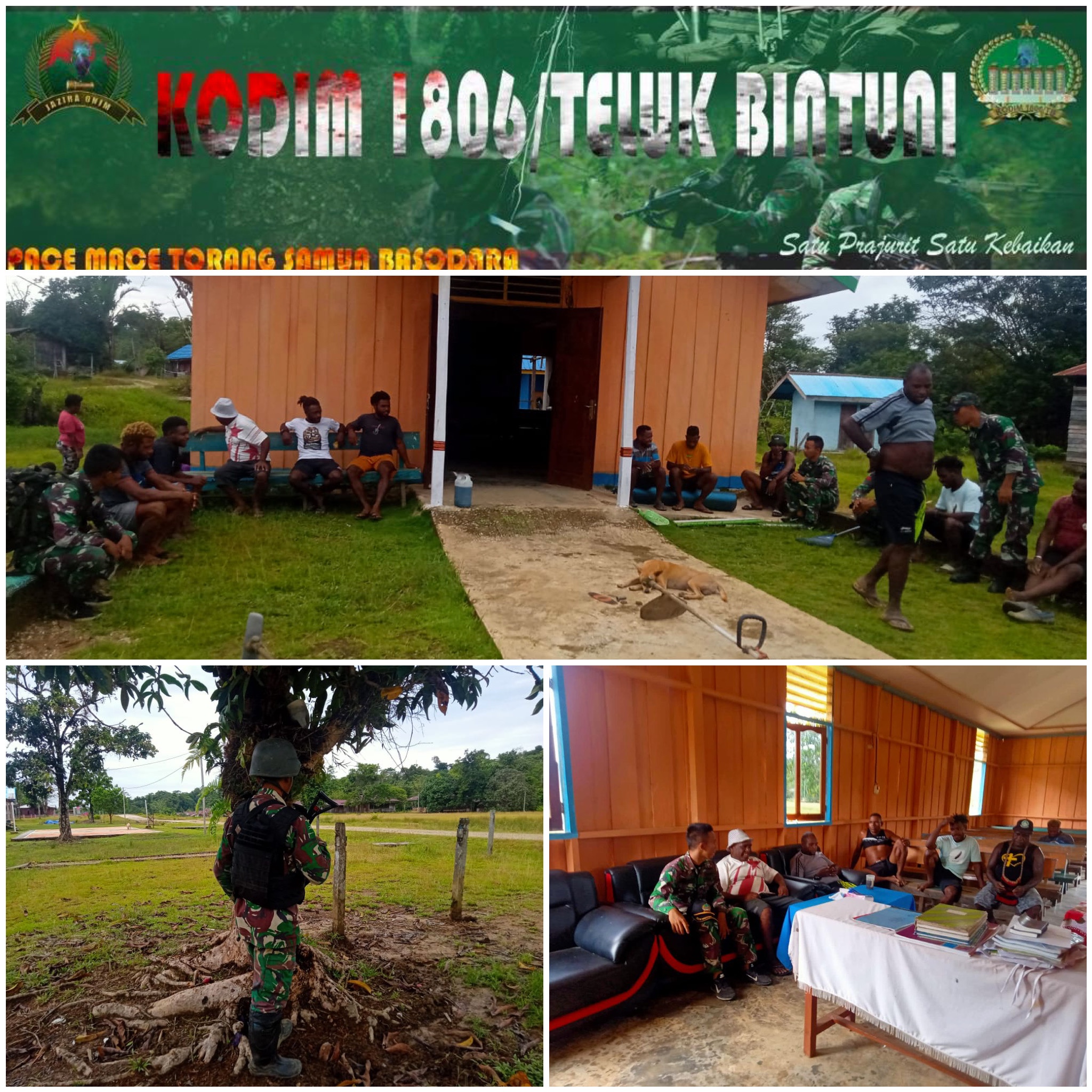 KEGIATAN POS KORAMIL MEYERGA MELAKSANAKAN KEGIATAN ANJANGSANAAnggota Pos Koramil Meyerga Personel Melaksanakan kegiatan anjangsana ke rumah Bapak kepala kampung istewkim sdr benny orocomna, Distrik Moskona Barat,