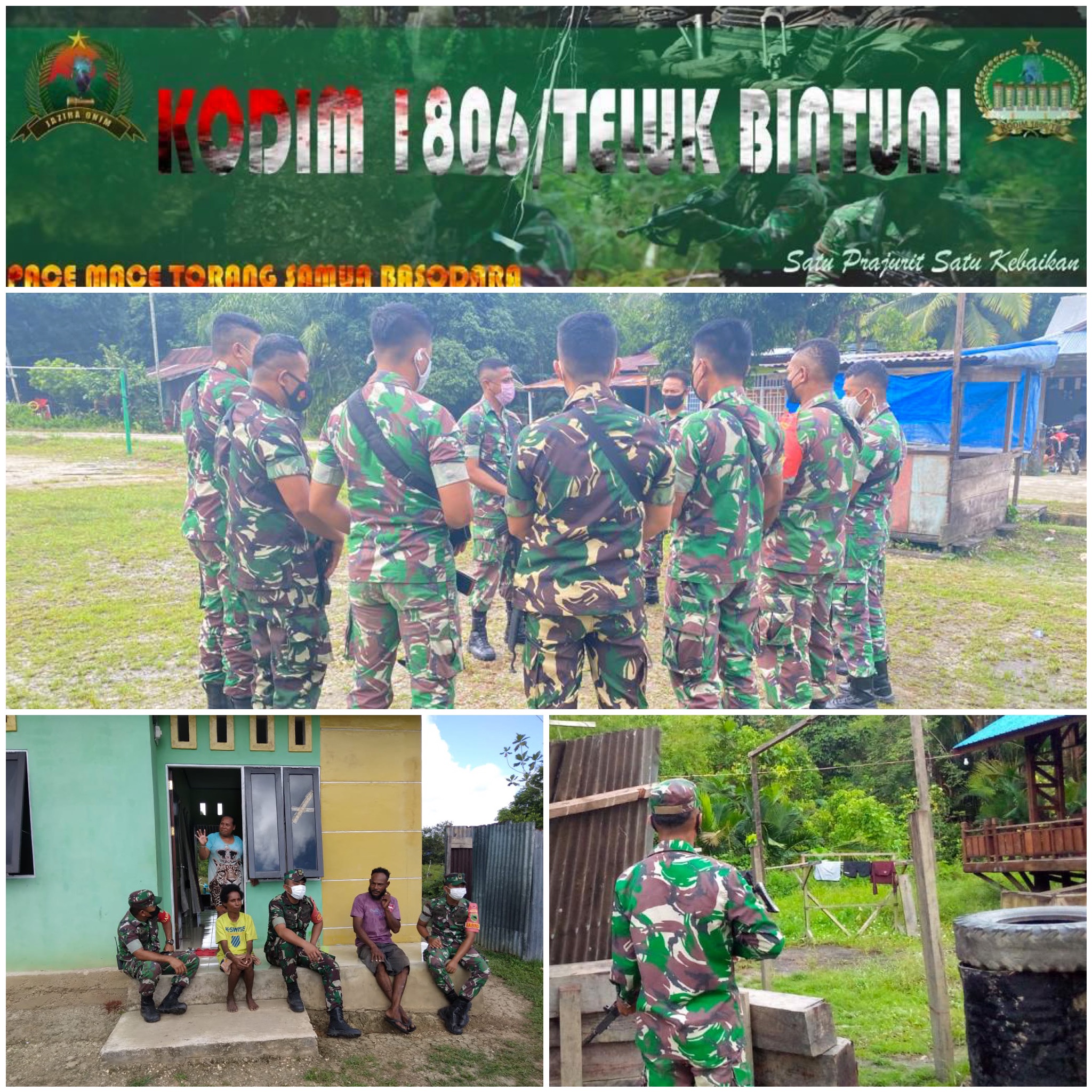 ANGGOTA KORAMIL PERSIAPAN SUMURI MELAKSANAKAN KEGIATAN ANJANGSANA KE TOKOH MASYARAKAT DI KP.TOFOI DISTRIK SUMURI KAB.TELUK BINTUNIpersonil Koramil persiapan Sumuri kekuatan 10 personil Dpp.Srt Supriyanto melaksanakan kegiatan anjangsana ke tokoh masyarakat di rumah bapak yohanes sabandafa,di kp.tofoi, Distrik Sumuri Kab.Teluk Bintuni dilaksanakan dalam keadaan aman.