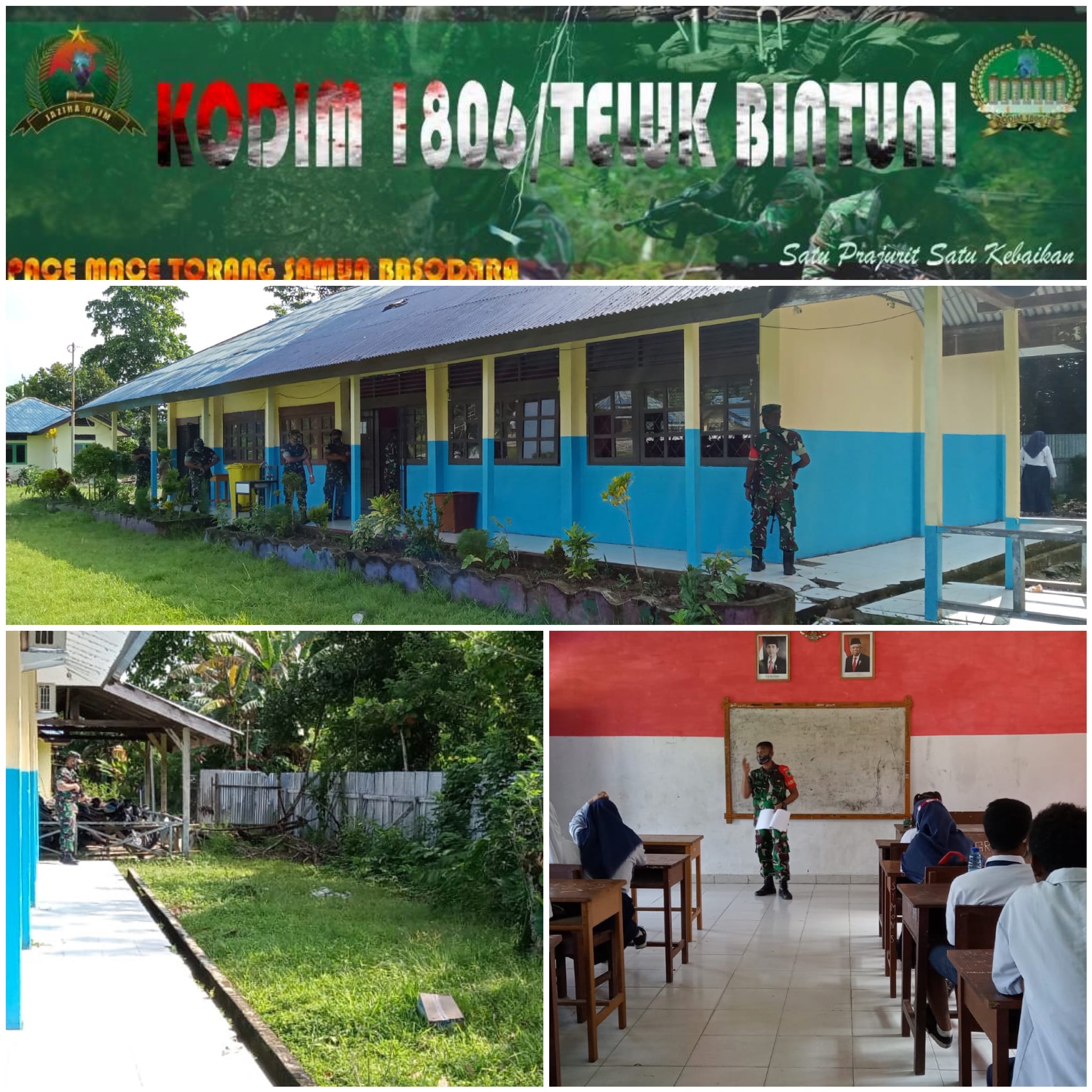 Kegiatan Wawasan kebangsaan Koramil persiapan Arobapersonil Koramil persiapan Aroba Di pimpin Seda Robi Sunata melaksanakan kegiatan Wawasan Kebangsaan di SMP Negeri Aroba kampung Sangguar Distrik Aroba Kab.Teluk Bintuni.